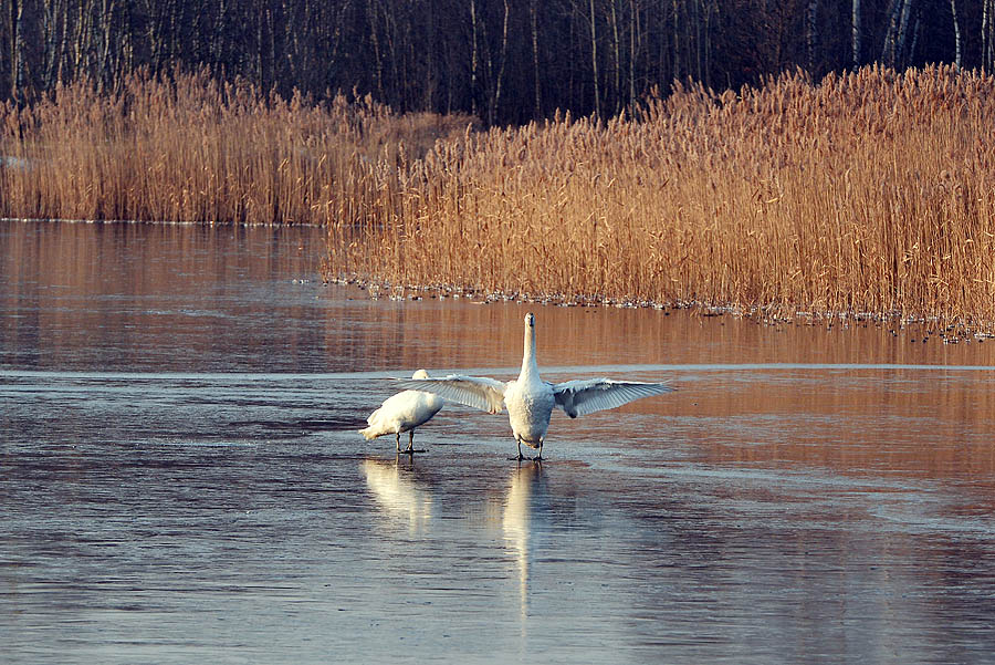 26 tam spacerowałem, parka łabędzi i stadko kaczek ładnie sobie pływali, aż tu nagle lód…