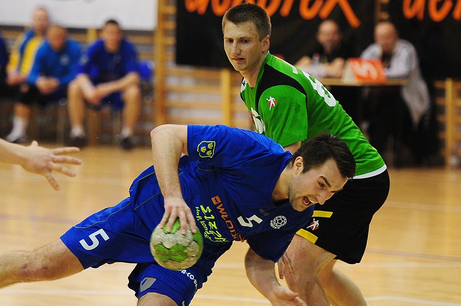 Od początku meczu obie drużyny postawiły na twardą obronę przez co pierwsza bramka padła dopiero w 3. min, a jej autorem był Piotr Pezda. Kolejne minuty to popis gry bramkarskiej z obu stron. Marcin Zajkiewicz obronił rzuty Krystiana Wędraka i Kamila Wasiłka a jego vis-a-vis był góra w pojedynkach z Gościłowiczem i Steglińskim. W 8. min Marek Kubajka podwyższył na 2:0, a dwie minuty później po bramce Mateusza Antolaka było już 3:0. Wtedy czas wziął trener WłodzimierzStawicki.