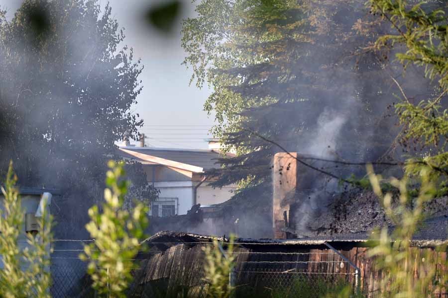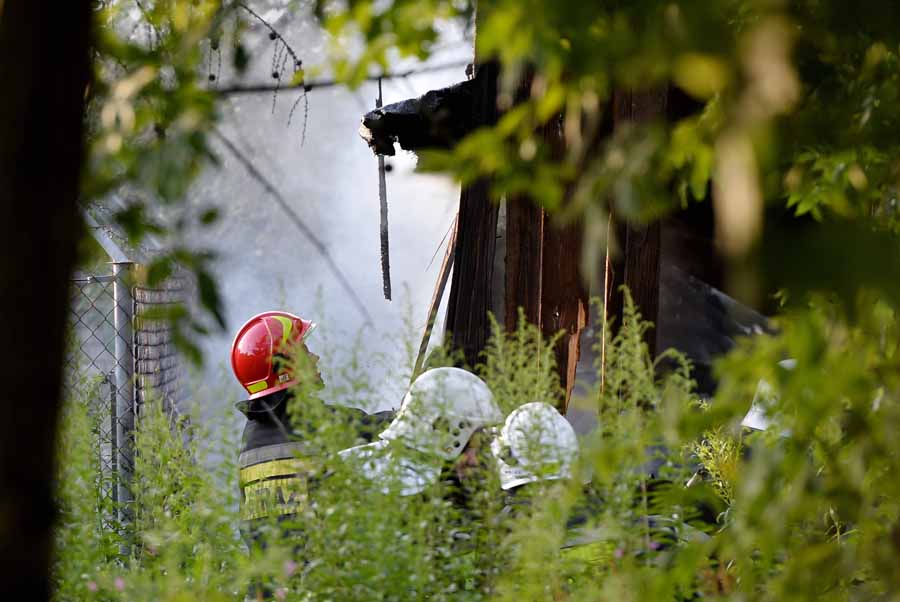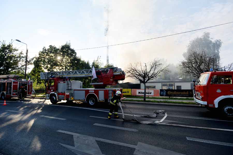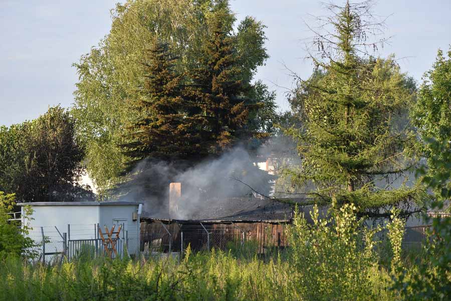 Paliły się drewniane komórki na działce obok zakładu wulkanizacyjnego przy ul. Lutomierskiej.