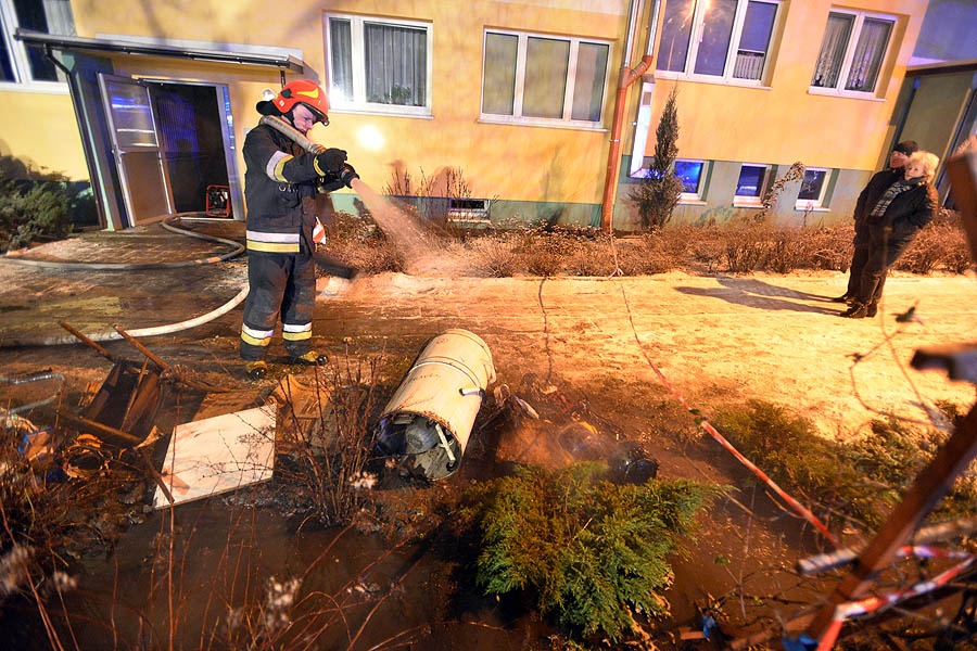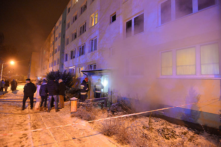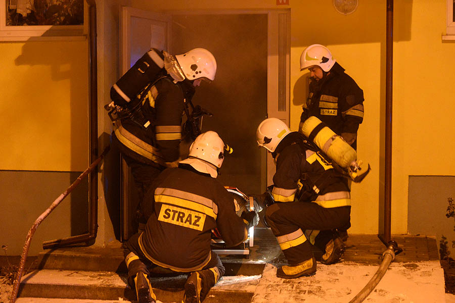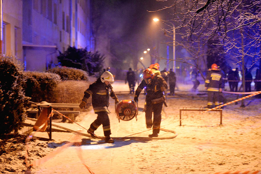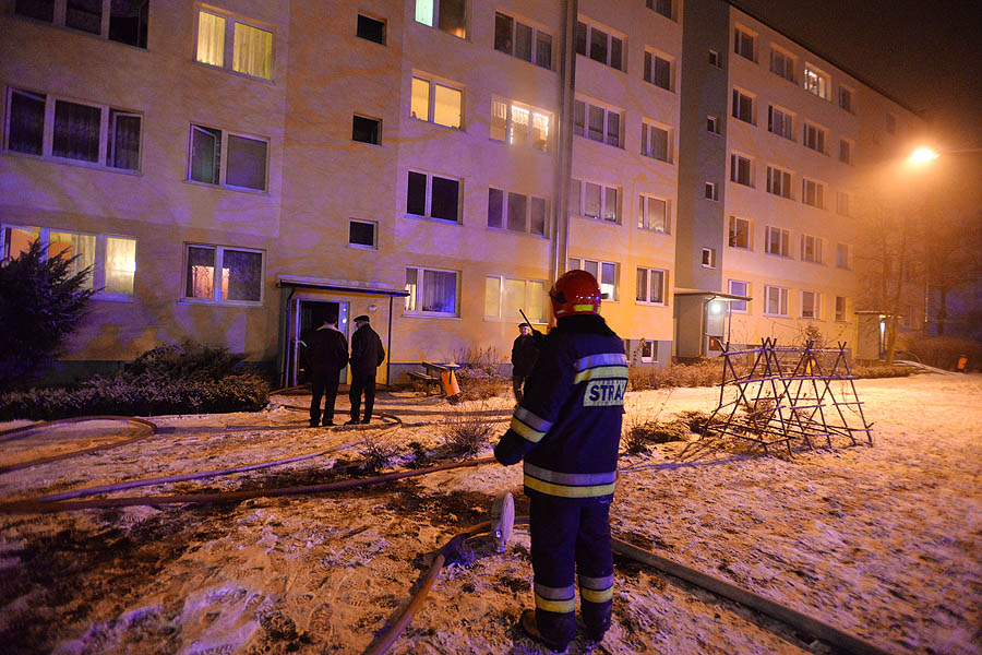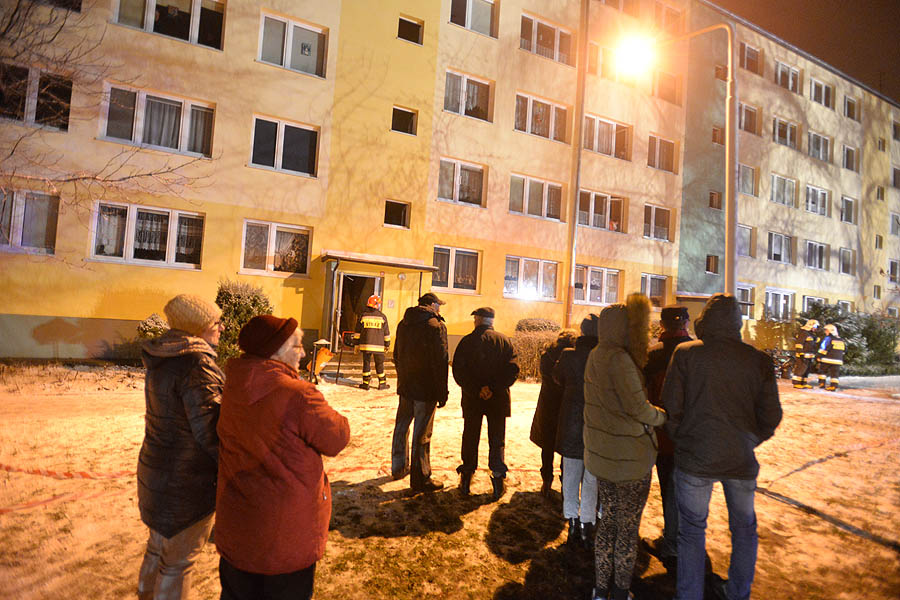 Pożar wybuchł w jednej z komórek. Zadymienie było tak silne, że strażacy, przy użyciu specjalnych wentylatorów, oddymiają cztery klatki schodowe. Na miejscu jest kilka zastępów straży pożarnej oraz pogotowie gazowe. Mieszkańcy przed blokiem czekają na autobus, który ma zostać podstawiony na polecenie inżyniera miasta. Poszkodowani czekają na mrozie. Niektórzy z nich z mieszkań wybiegli w łapciach i piżamach.