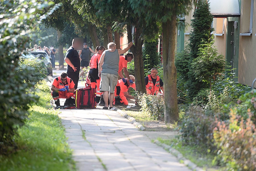 Drastyczne sceny przy ul. Moniuszki rozegrały się w okolicach godziny 9.00, gdy około czterdziestoletni mężczyzna wypadł z okna mieszkania na czwartym piętrze. Na miejscu zjawiły się dwa zespoły ratownictwa medycznego, które stwierdziły u poszkodowanego uraz kręgosłupa. Mężczyzna w ciężkim stanie został zabrany do szpitala im. M. Kopernika w Łodzi.