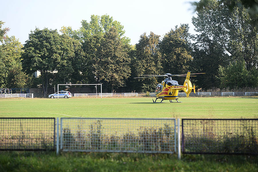 W Pabianicach pojawił się także śmigłowiec LPR, który wylądował na stadionie PTC. Tym razem jednak wrócił do bazy bez pacjenta, lekarze z karetki podjęli decyzję o transporcie poszkodowanego za pomocą ambulansu. Nieznane są dokładne okoliczności zdarzenia.