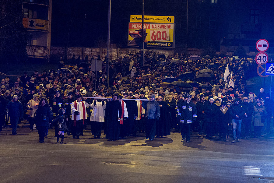 W rym roku trasa drogi krzyżowej prowadziło wyjątkowo ulicami Bugaju. Wierni przeszli od św. Mateusza do kościoła Miłosierdzia Bożego przy ul. 20 Stycznia, gdzie znajduje się Brama Miłosierdzia. Nabożeństwo sprawowane było w intencji Światowych Dni Młodzieży, które odbędą się w Krakowie. Do Polski ma przyjechać papież Franciszek.