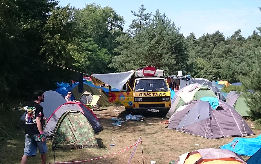 Na festiwalu odmeldowało się wielu pabianiczan. Tradycyjnie już nad tłumem powiewał materiałowy transparent z nazwą naszego miasta, przygotowany przez Projekt Światowid. To grupa przyjaciół, która podróżuje starym Volkswagenem Transporterem po Europie. Ich końcowy etap wyprawy to właśnie festiwal w Kostrzynie nad Odrą. Na koncertach bawili się m.in. muzycy z pabianickich zespołów Maggoth/Dziady Borowe i RZK Sound.