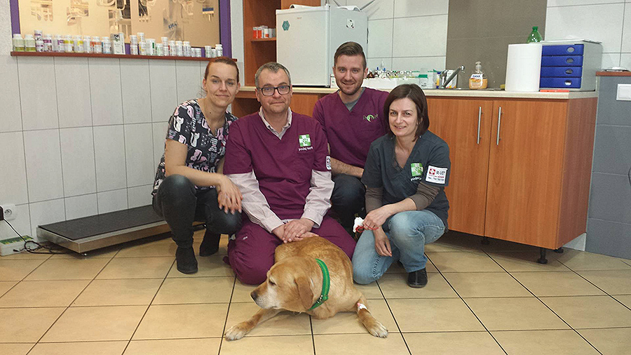 – Dopiero po adopcji nowi właściciele zwrócili uwagę na to, że pies ma kłopoty z chodzeniem i wyraźnie cierpi, przez co mało biega i kiepsko się przemieszcza. Abi trafiła do nas na badania i okazało się, że ma dysplazję stawów biodrowych i zmiany zwyrodnieniowe w obrębie obydwu tych stawów – tłumaczy Kuba Butkiewicz, weterynarz z Podaj Łapę. – Dzięki naszej współpracy z laboratorium komórek macierzystych Vet-Regen i dzięki pomocy doktor Joanny Sanford oraz całego zespołu, Abi została zakwalifikowana do zabiegu przeszczepu komórek macierzystych. Nowi właściciele i Labradory.info podzielili się kosztami zabiegu, a my wykonaliśmy go po kosztach.
