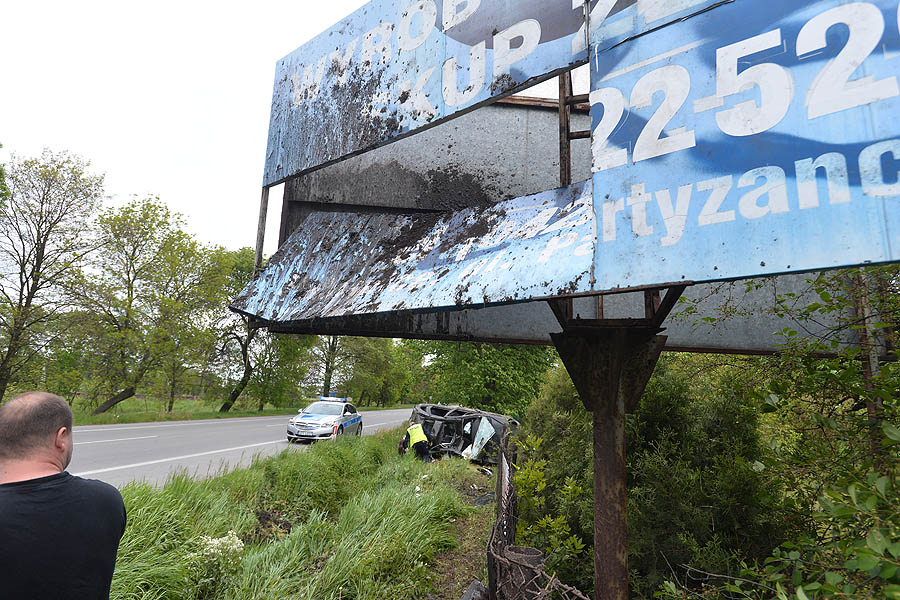 Do wypadku doszło w Chechle Pierwszym, przed godz. 12.00. Kierowca Renault jechał od strony Dobronia. zaraz za siedzibą firmy Fortech zjechał do rowu i uderzył w przepust. Auto wybiło w górę, samochód zahaczył o billboard i wylądował na boku. Kierowca został zabrany do szpitala.