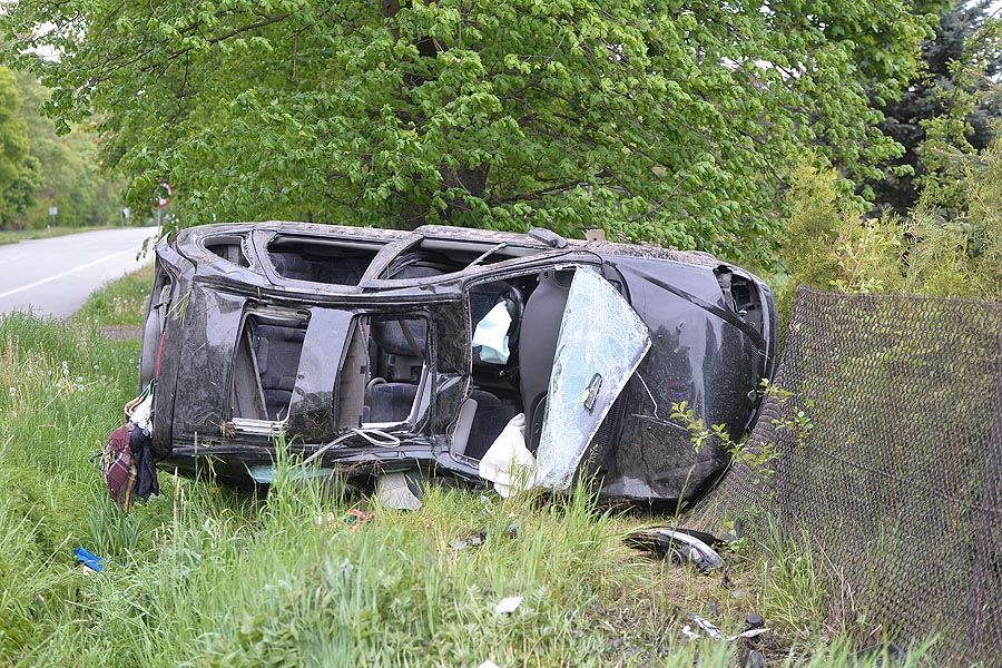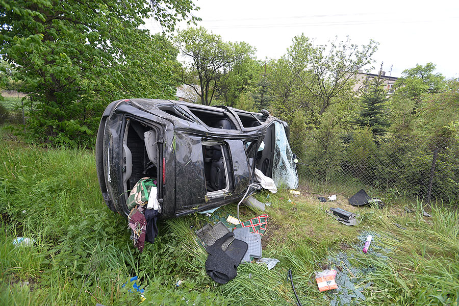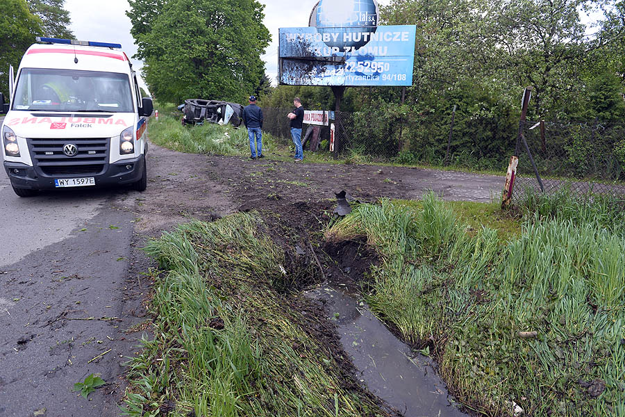 Około 50-letni kierowca Renault Scenic wjechał do rowu. Samochód uderzył w przepust i przeleciał około 20 metrów.