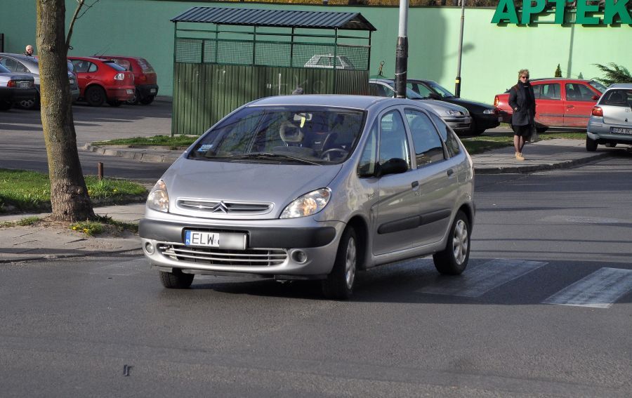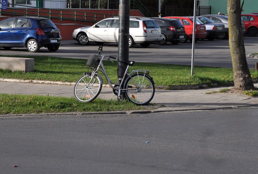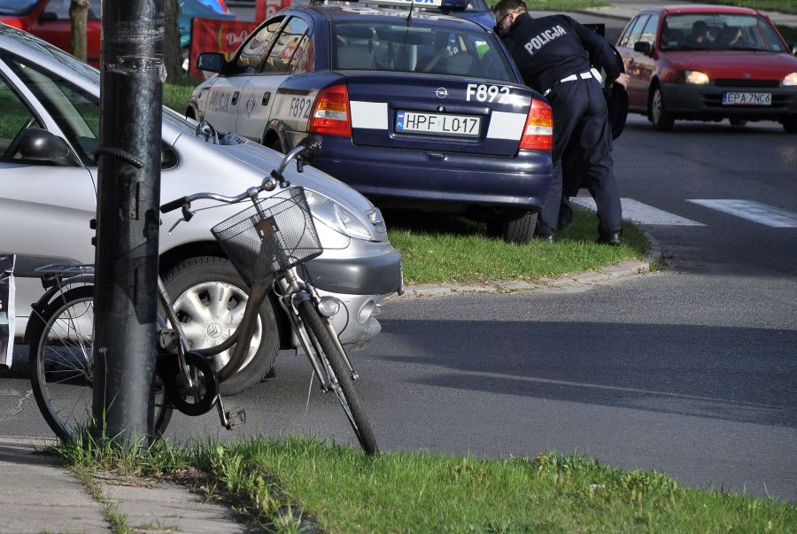 Kobieta kierująca Citroenem na łódzkiej rejestracji jadąca ulicą Podleśną potrąciła rowerzystę. Samochód zatrzymał się na przejściu dla pieszych.