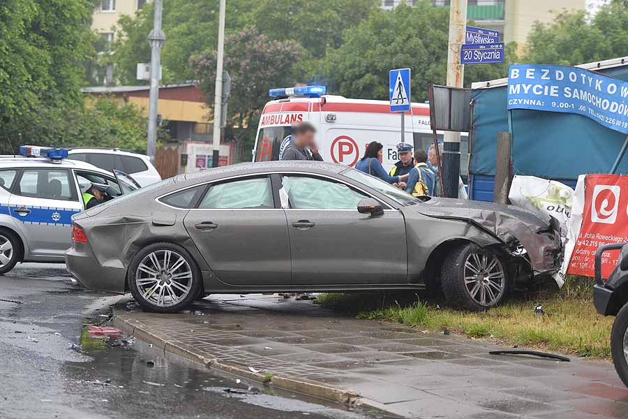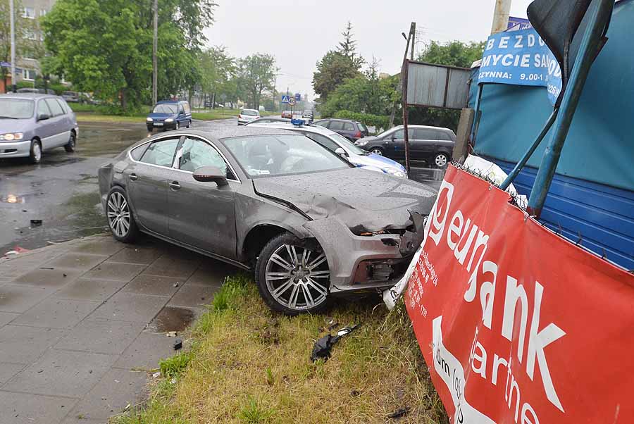 Uderzenie było bardzo silne. W A7 otworzyły się poduszki i kurtyny powietrzne. Samochód wart około 250 tys. złotych nadaje się jedynie do kasacji. W podobnym stanie jest Chevrolet.