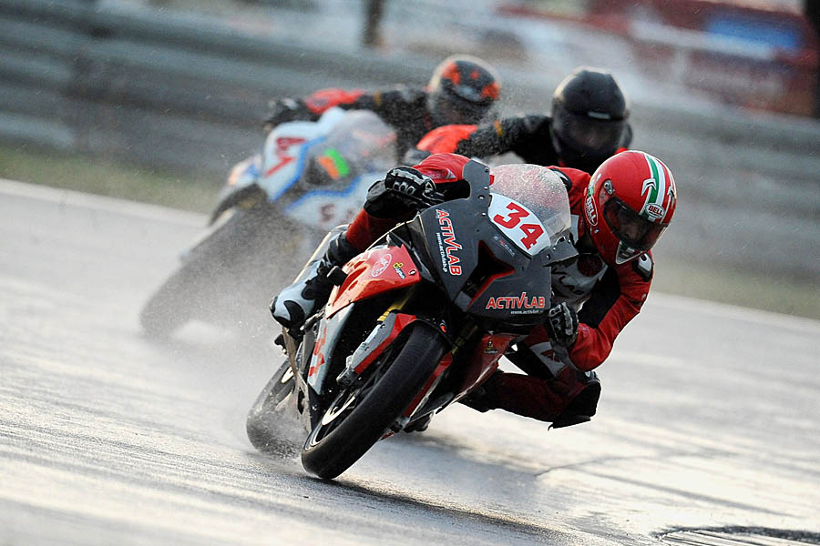 – W pierwszym wyścigu przez większość okrążeń jechał jako drugi z dwoma innymi zawodnikami dosłownie wiszącymi na plecach. Cała czwórka znacznie oddaliła się od reszty peletonu i szybko dogoniła ogon stawki. Zaczęły się duble. Organizator nawalił i tylko na prostej machano im niebieską flagą. Na dwu z nich Piotr się pogubił, został spowolniony przez omijanego zawodnika i wyprzedzony przez swoich oponentów. Tempo całej czwórki było ostre i nie było mowy o odrobieniu tej straty i nasz zawodnik tylko otarł się o podium. Tym sposobem wizja walki o tytuły się całkiem rozmyła w tym sezonie – relacjonuje SBK Racing Team, w którym startuje Piotr.
