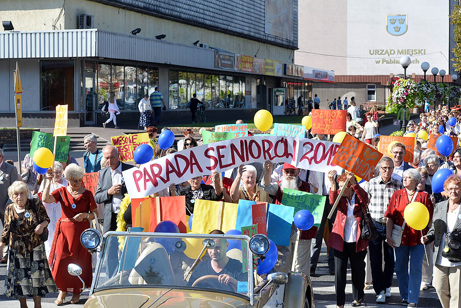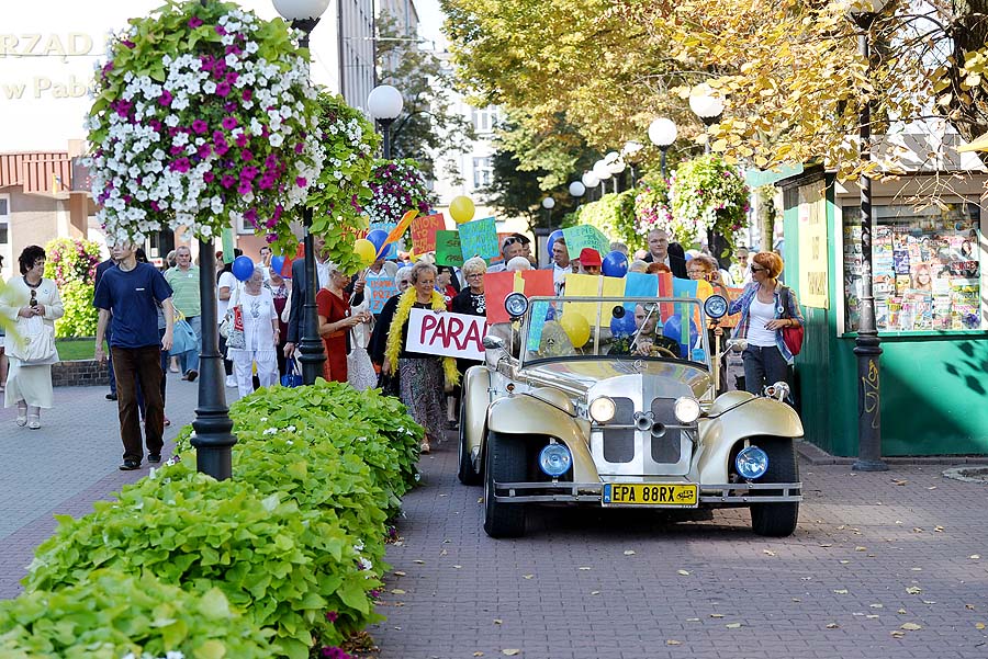 Impreza zaczęła się kolorową paradą, w której wzięło udział kilkadziesiąt osób. Korowód prowadził zabytkowy kabriolet. Seniorzy przemaszerowali sprzed urzędu miejskiego na Stary Rynek, gdzie odbyły się koncerty. Gwiazdą pierwszego dnia senioriady był Jerzy Połomski.