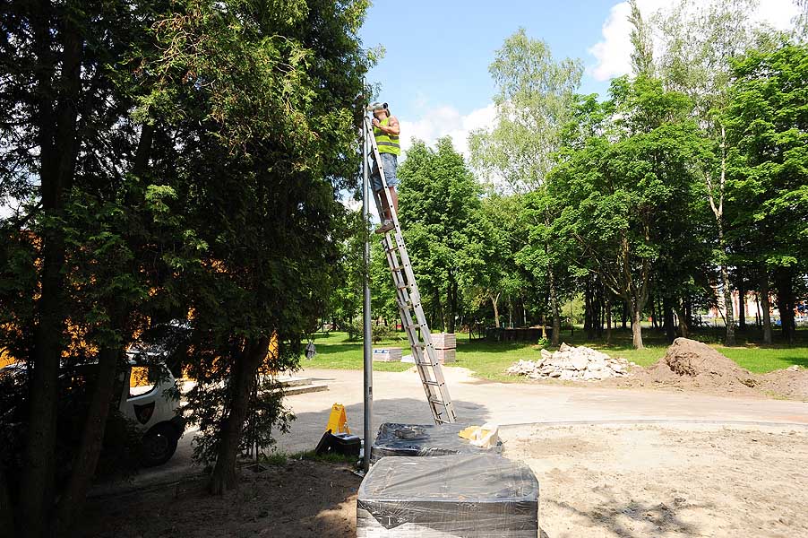 Dziś zamontowany został monitoring. Porządku na siłowni będą strzegły dwie kamery zainstalowane na specjalnych masztach. Sygnał z kamer przesyłany jest do Zakładu Ochrony Mienia i tam zapisywany na twardym dysku. Zarządcy obiektu bardzo zależało na monitoringu, bo sprzęt za 70 000 złotych mógłby być szybko zdewastowany.
