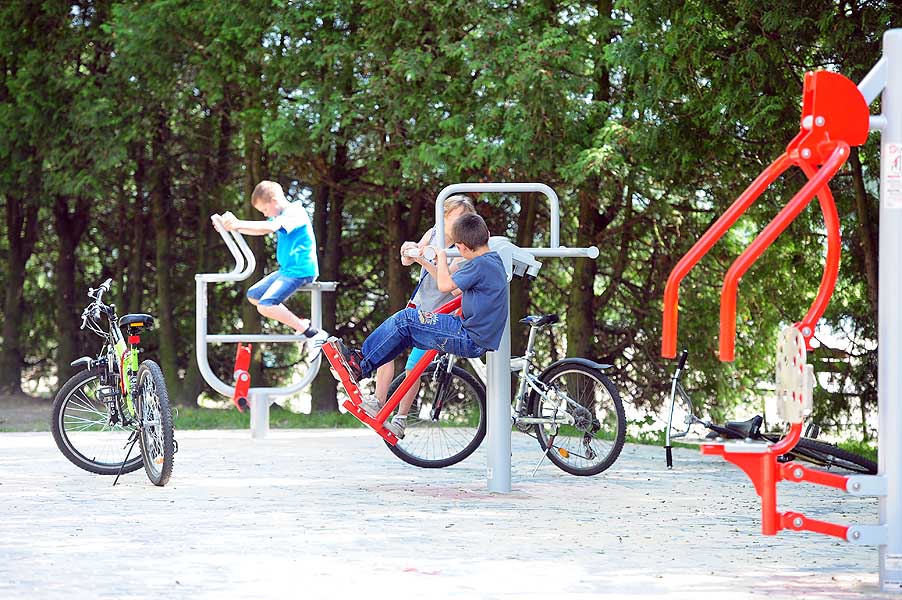 Zainstalowane zostały już wszystkie przyrządy w plenerowej siłownia na Lewitynie. Brukarze kończą układać kostkę.