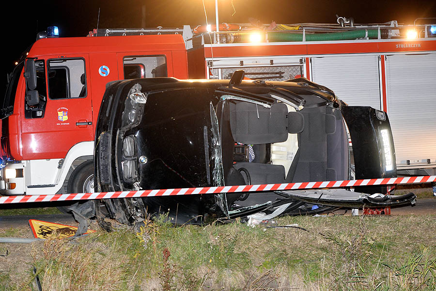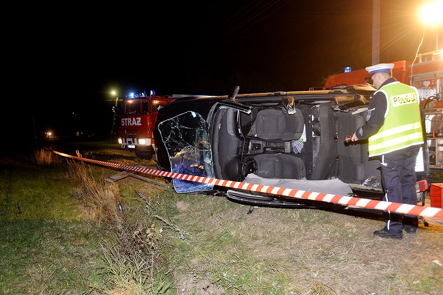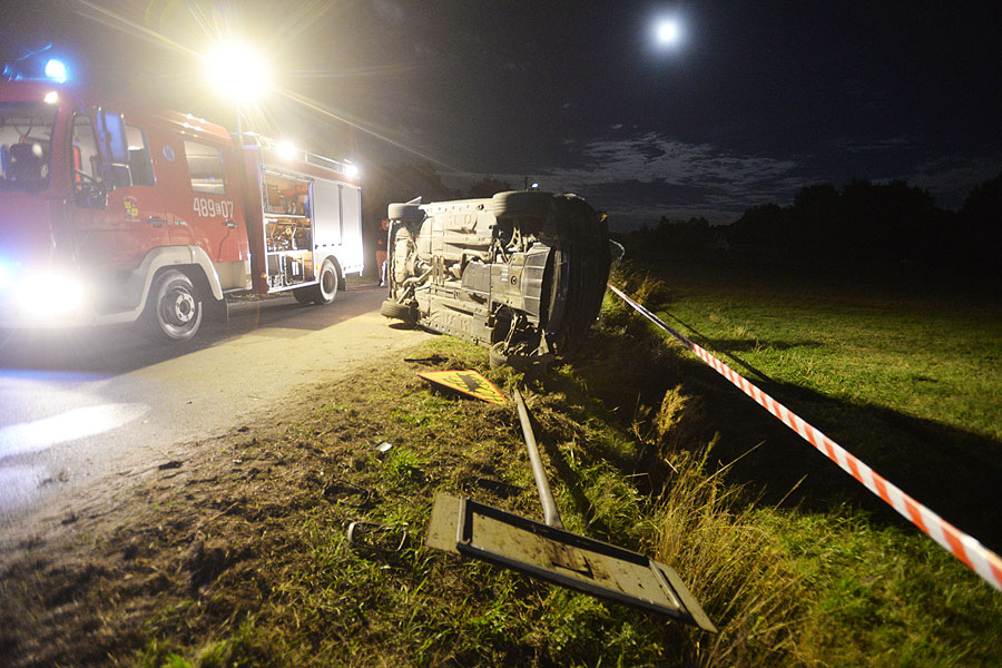 Około 40-letni kierowca szalał po Orpelowie (gmina Dobroń). Brawurowa jazda zakończyła się wypadkiem. Około godz. 19.30 kierowca wpadł w poślizg, a jego auto przewróciło się na bok. Został uwięziony w środku. Na miejsce przyjechali strażacy z Dobronia, Orpelowa i Pabianic. Użyli sprzętu do ratownictwa drogowego, żeby wyciągnąć poszkodowanego na zewnątrz.