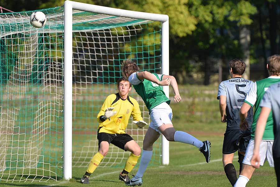 „Zieloni” od początku z animuszem ruszyli na bramkę Zawiszy. W 4. min po wrzucie z autu niecelnie z bliska główkował Patryk Sumera, a dwie minuty później ten sam zawodnik groźnie uderzał sprzed pola karnego po dalekim wykopie Damiana Rzeźniczaka i zgraniu Patryka Olszewskiego.