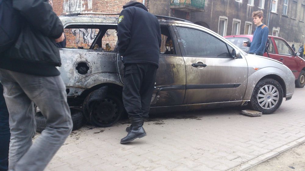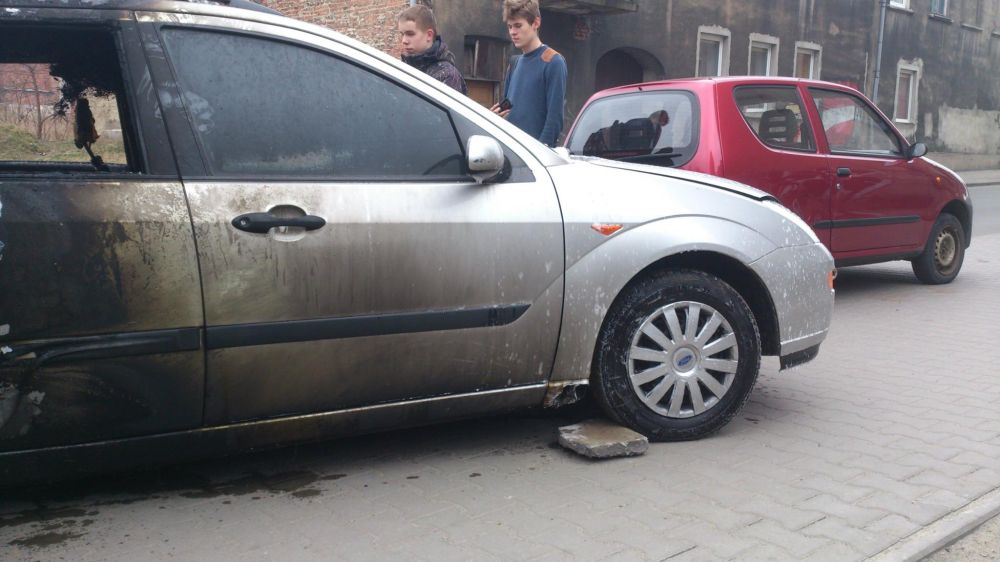 Oprócz forda, który spłonął niemal cały osmoleniu uległa także stojąca obok skoda fabia. Focus raczej nie nadaje się już do użytku, wnętrze samochodu jest całkowicie spalone.