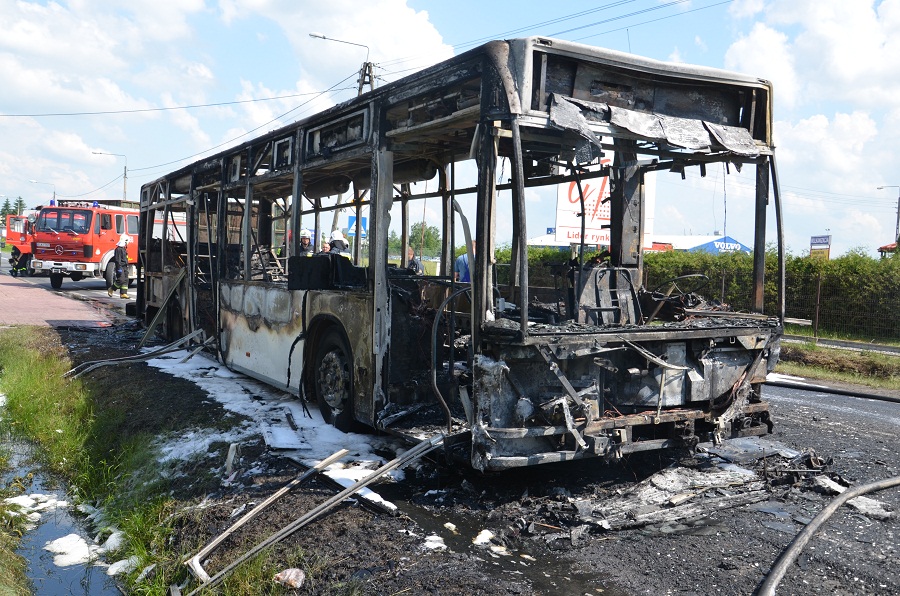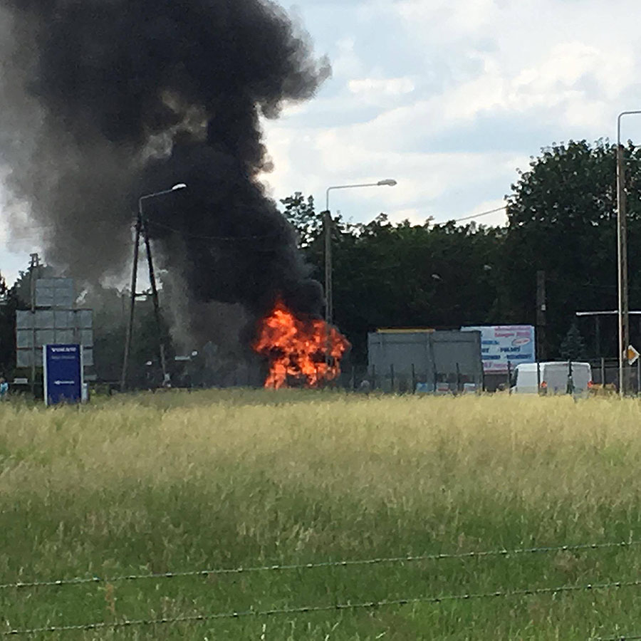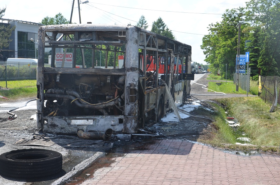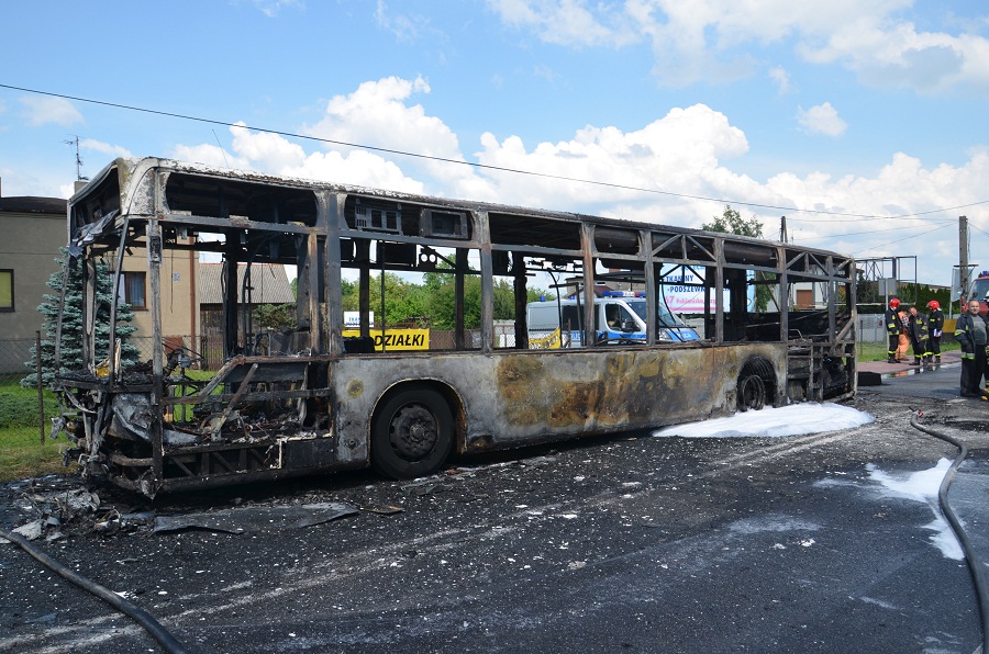 Autobus zapalił się podczas jazdy na drodze nr 71 pomiędzy Gospodarzem i Rzgowem. Dym widać było z ul. Zamkowej.