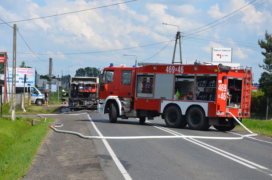 Prawdopodobną przyczyną pożaru było zwarcie instalacji elektrycznej. Nikt nie został poszkodowany. Do zdarzenia doszło około godziny 13.50. Na drodze do Rzgowa są spore utrudnienia w ruchu. Autobusy linii T kierowane są objazdem przez Guzew. W ciągu godziny ruch ma zostać wznowiony wahadłowo.