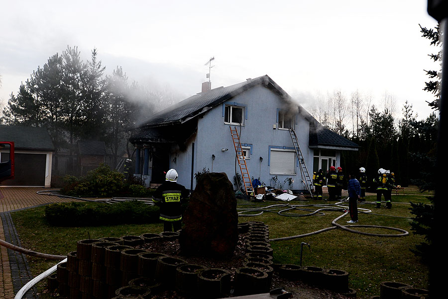 Około godz. 14.30 o pożarze zaalarmowana została straż pożarna. Kiedy na miejsce dotarli ochotnicy z Lutomierska dom stał w ogniu. Do pożaru wezwano kolejne jednostki. Ogień strawił sporą część budynku. Pomocy medycznej udzielono dwóm starszym kobietom, które nawdychały się dymu. Trwa dogaszenie pożaru.