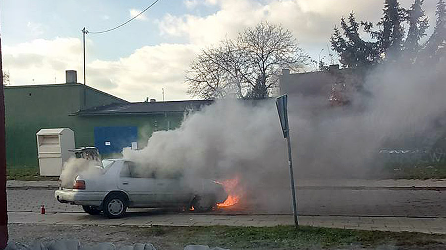 Zwarcie instalacji elektrycznej było przyczyną pożaru samochodu Hyundai Pony. Straty oszacowano na 1 800 złotych.