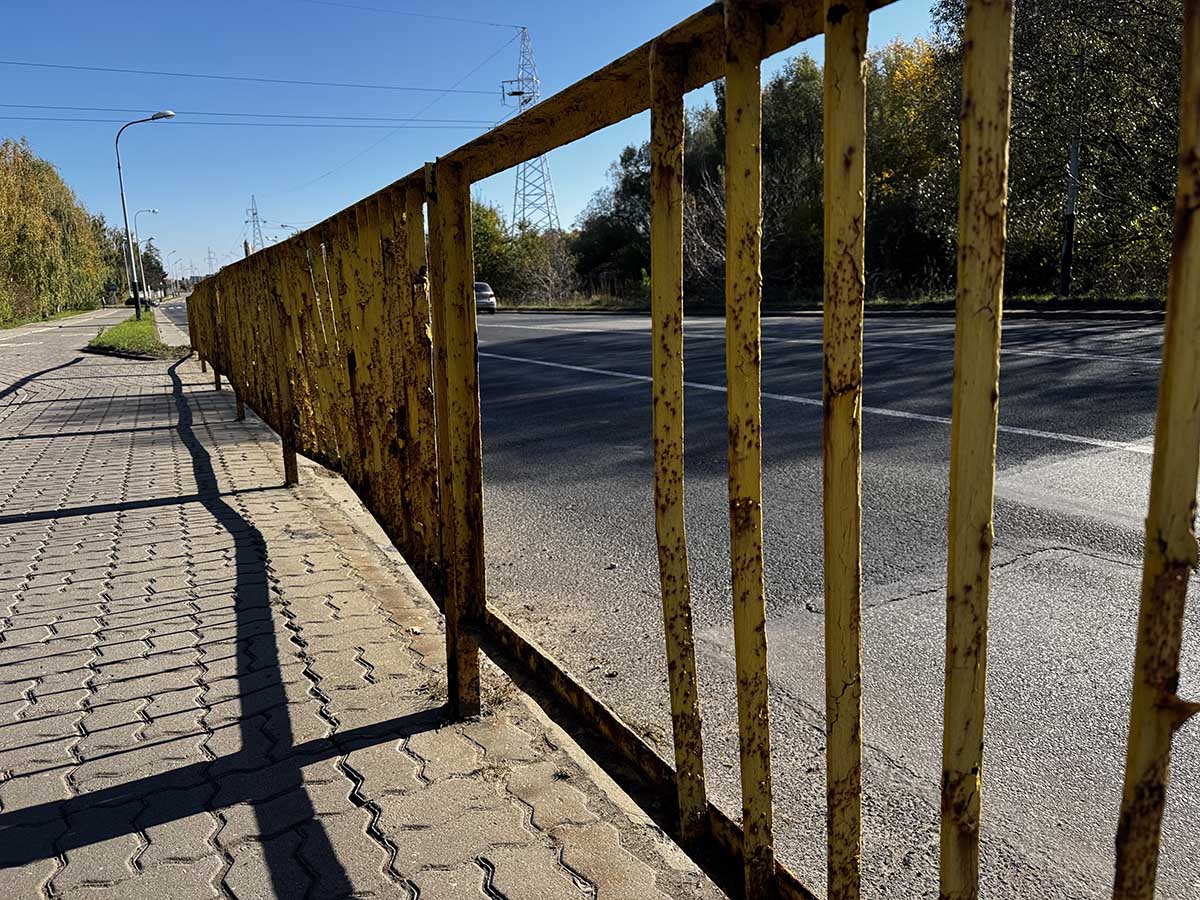 Nie lepiej jest z barierkami oddzielającymi chodnik od jezdni. Metalowe przęsła są zardzewiałe, powyginane, a farba dawno z nich zeszła. Co gorsza, brakuje wielu elementów, przez co w niektórych miejscach barierka jest po prostu dziurawa.