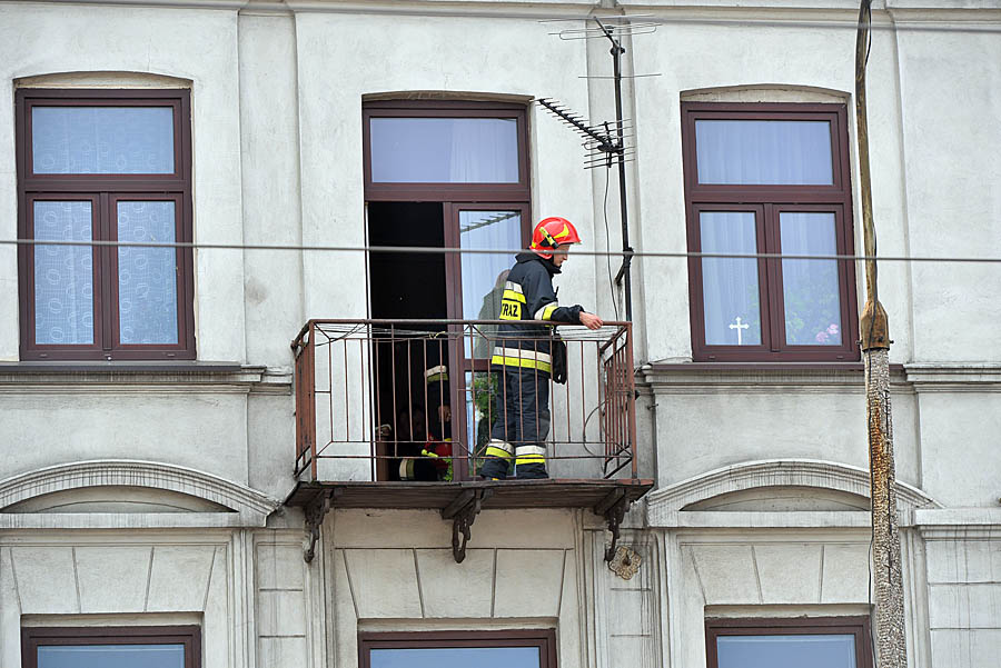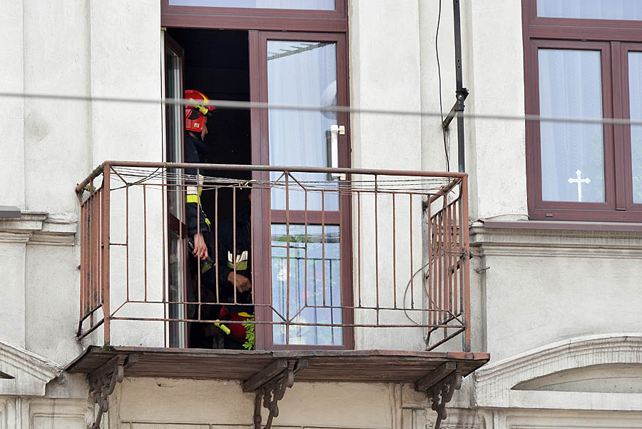 Ratowników zawiadomiła opiekunka starszej pani. Nie było z nią kontaktu, a drzwi wejściowe do mieszkania były zamknięte. Na pomoc przyjechały 2 zastępy straży pożarnej. Strażacy do mieszkania na drugim piętrze kamienicy weszli po drabinie.