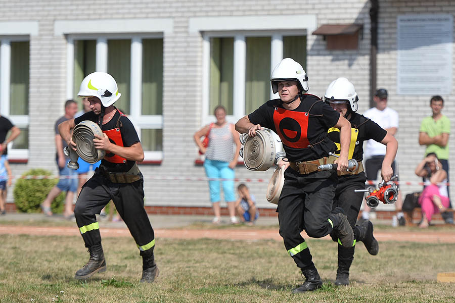 Na boisku szkolnym w Dobroniu stawiło się 7 jednostek. Nie przyjechali tylko strażacy z Mogilna, za to gospodarze wystawili dwie drużyny. Druhowie rywalizowali w dwóch konkurencjach: sztafecie i bojówce. Najlepsza okazała się ekipa z Dobronia. Druga była jednostka OSP z Markówki, a trzecie miejsce na podium zajął Orpelów.