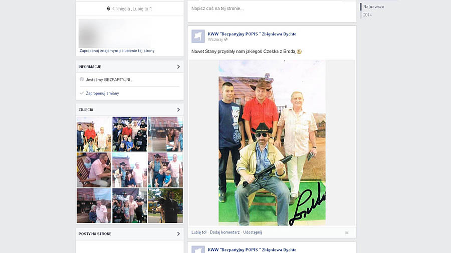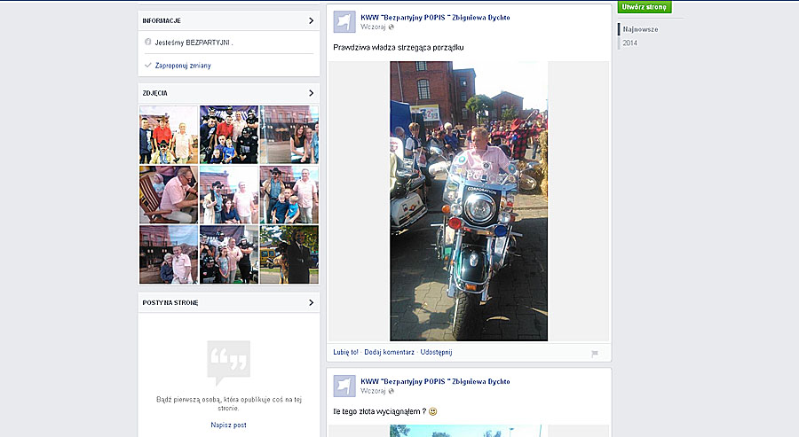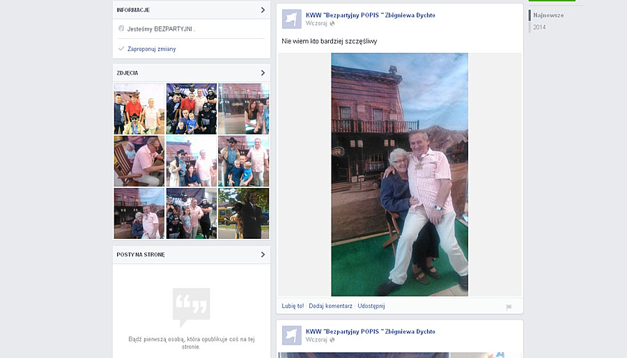 W ciągu tygodnia powstały dwie strony KWW Bezpartyjny POPIS Zbigniewa Dychto. Dlaczego dwie? Ktoś, kto wziął się za promocję prezydenta w mediach społecznościowych nie ma o tym zielonego pojęcia. Na stronach nie ma ustawionego zdjęcia profilowego i w tle, a jedyną informacją jest zadanie „Jesteśmy bezpartyjni”.