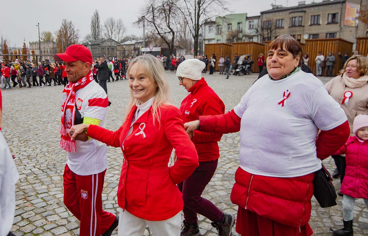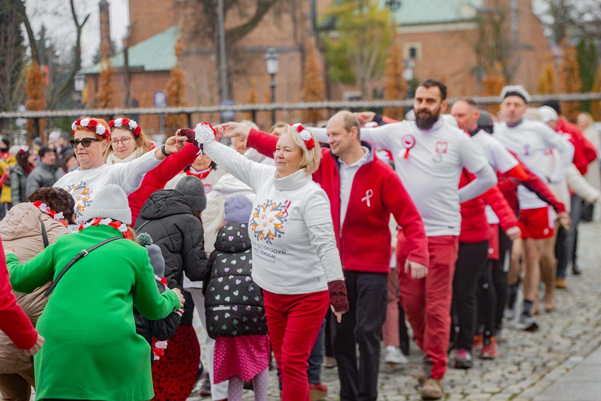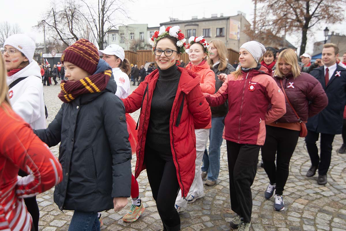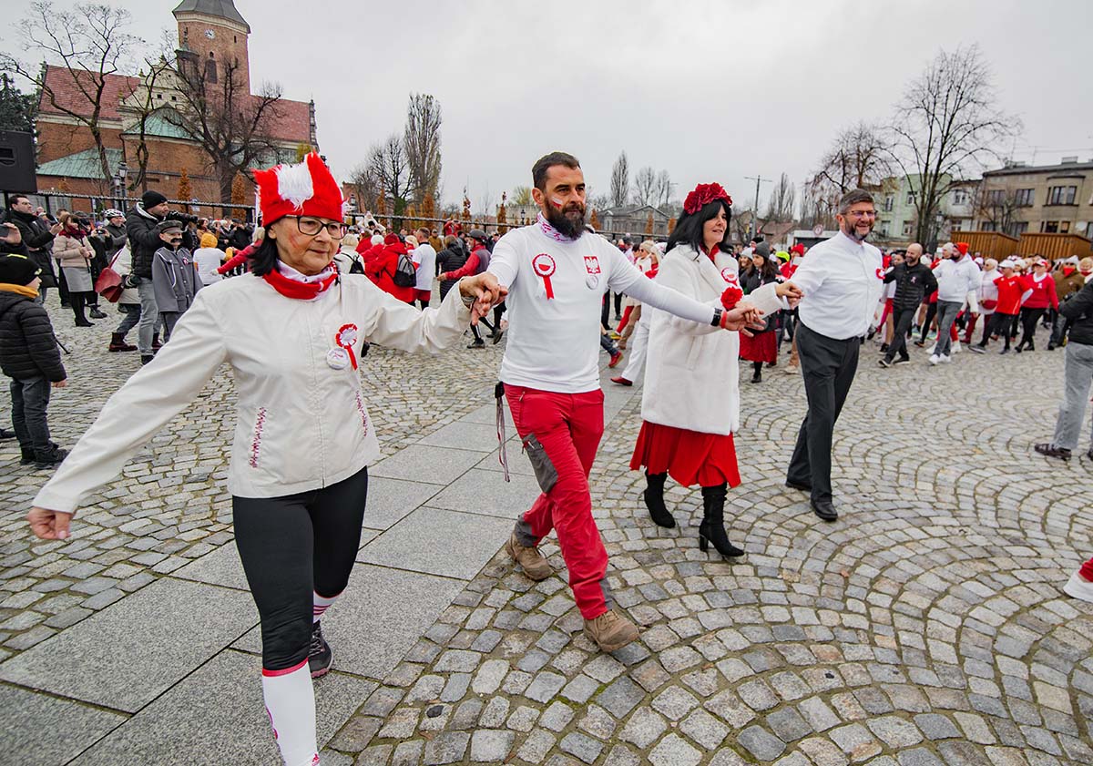 Korowód poprowadziły panie z Koła Gospodyń Miejskich, w barwnych biało-czerwonych strojach, które dodały uroku całemu wydarzeniu. W drugiej parze szedł prezydent Pabianic Grzegorz Mackiewicz wraz ze swoją zastępczynią Aleksandrą Jarmakowską-Jasiczek.