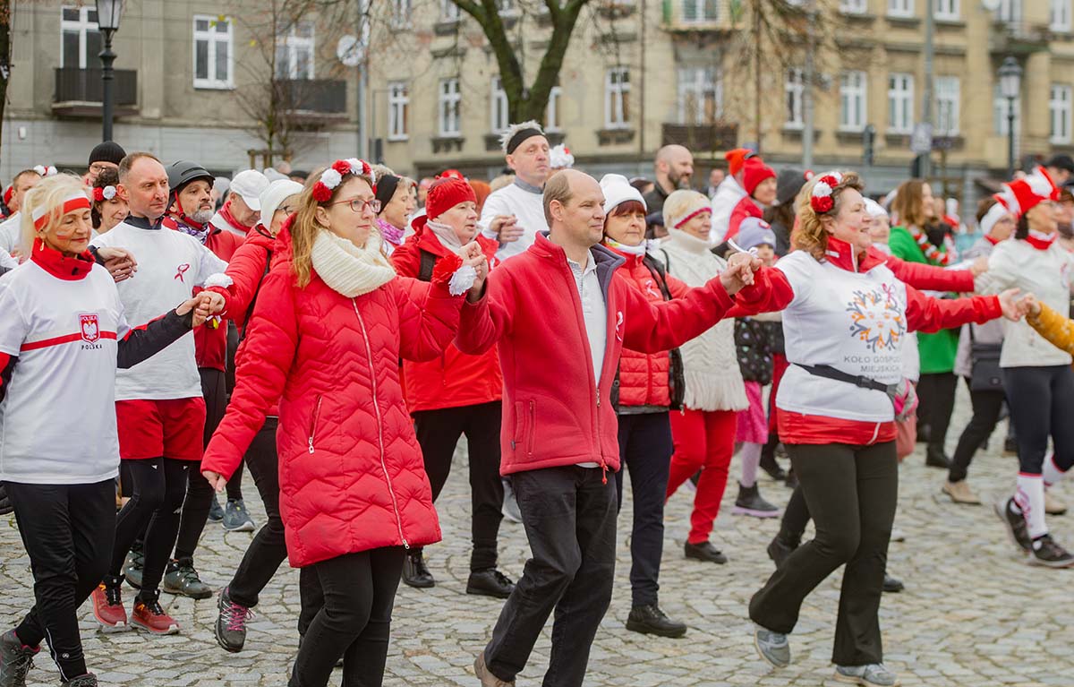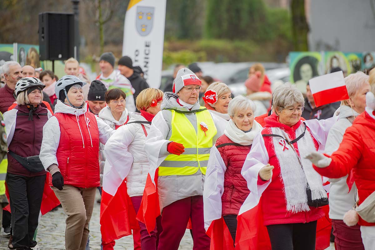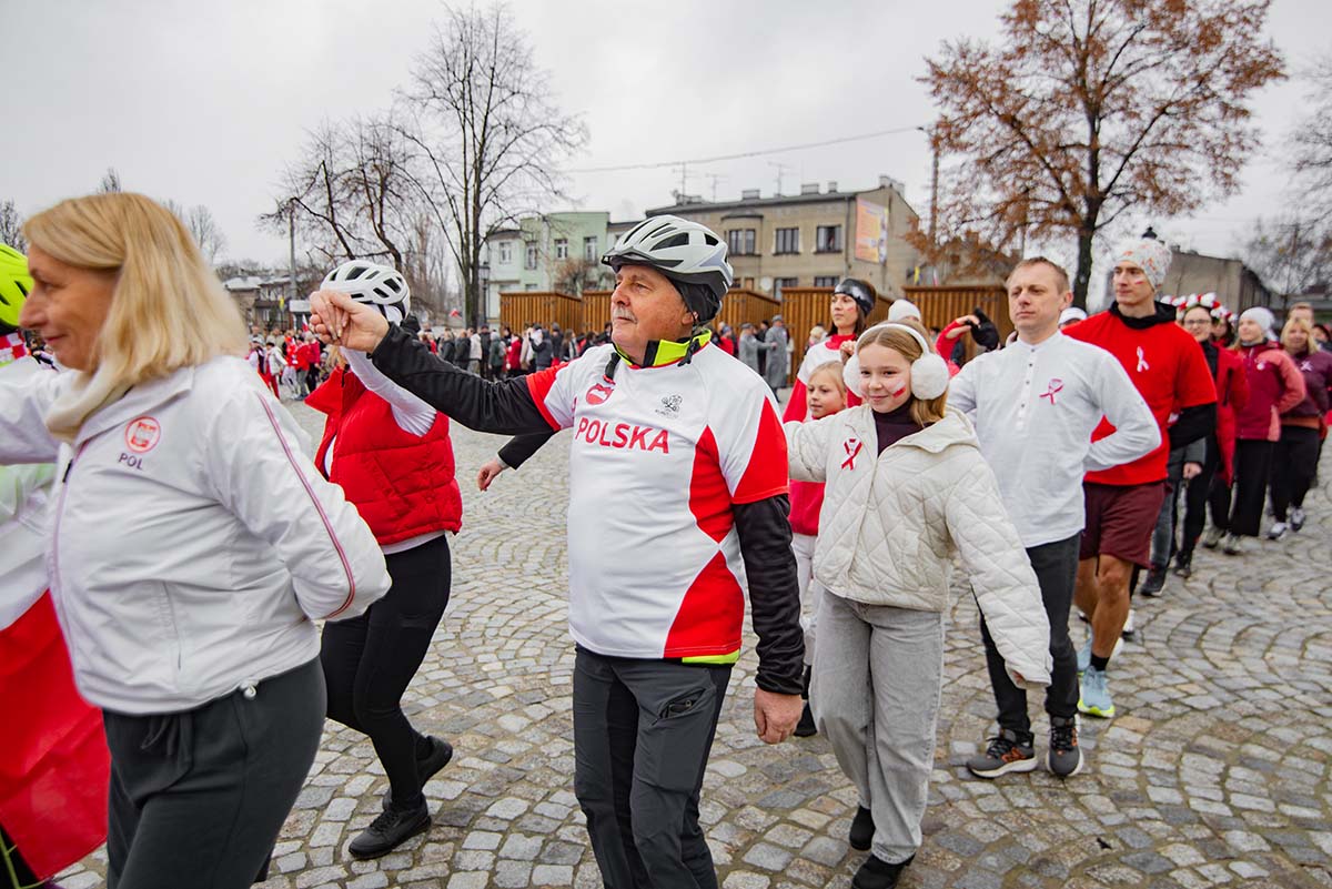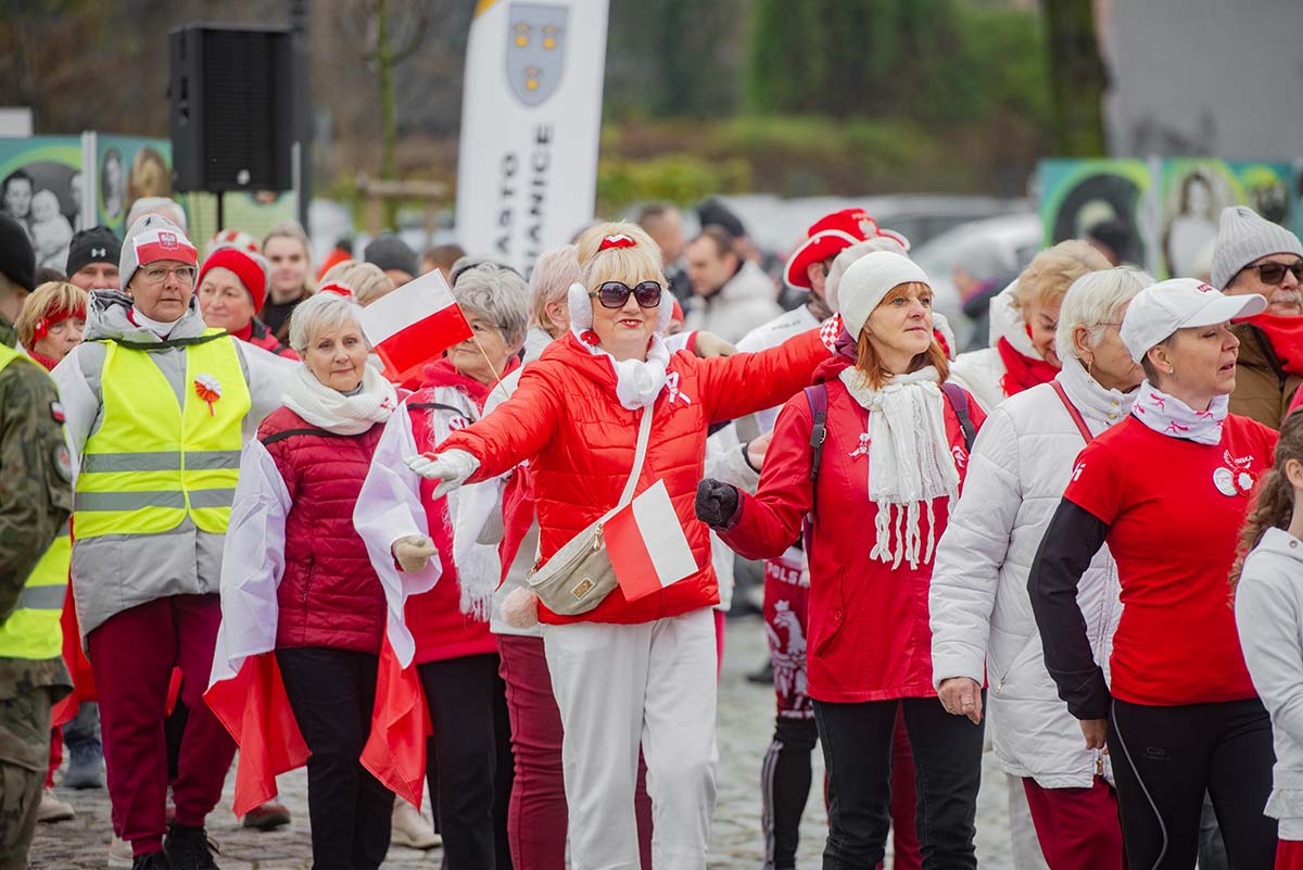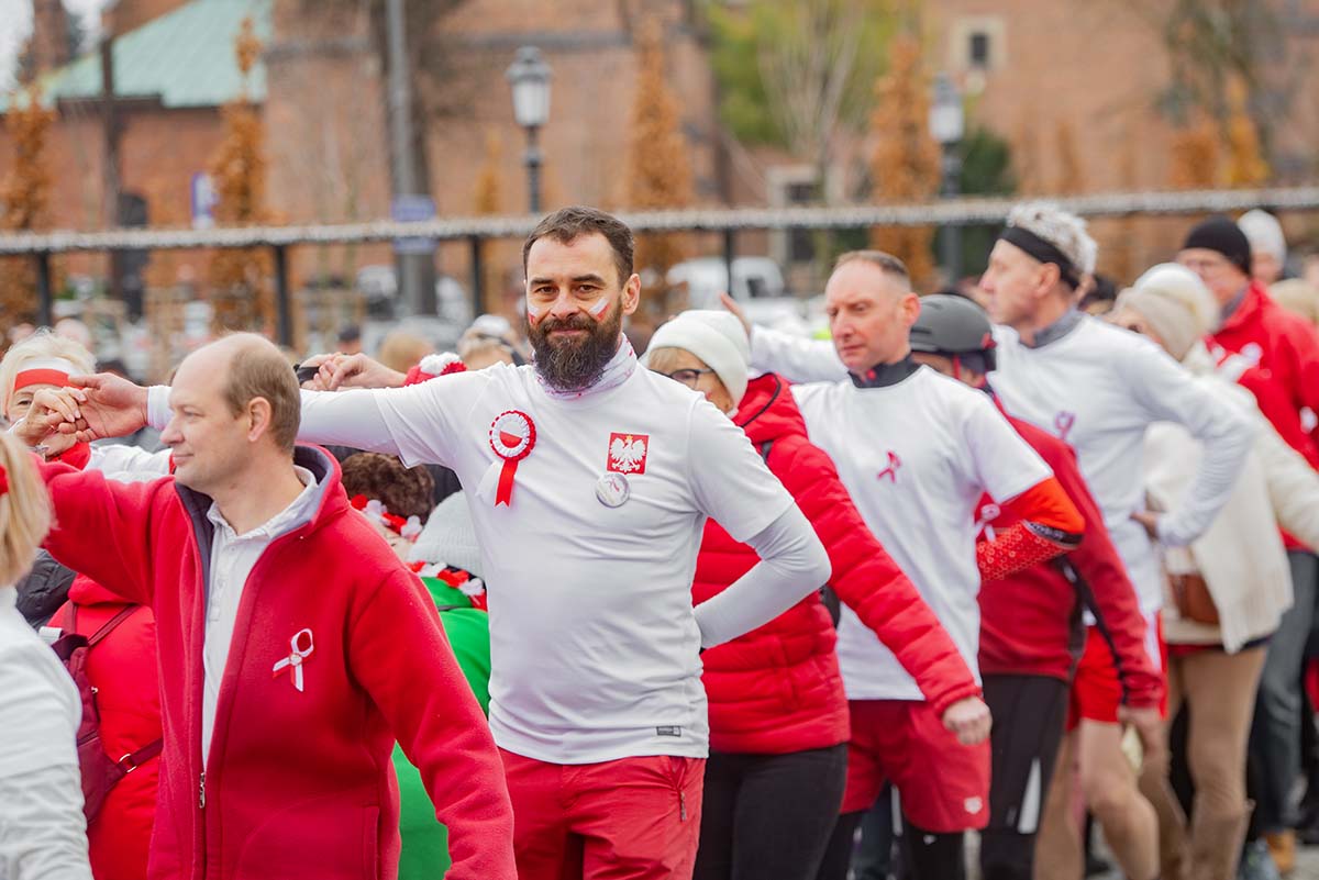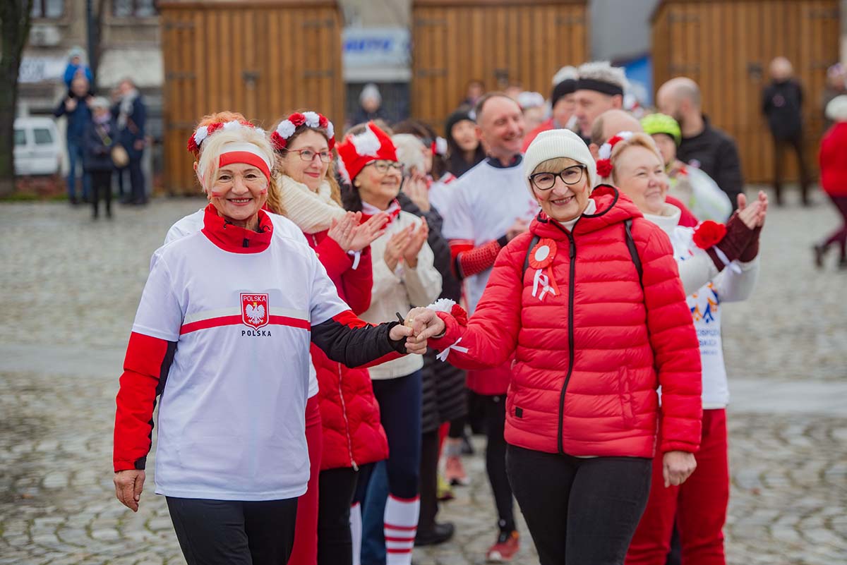 Po zakończeniu tańca uczestnicy przemaszerowali w kierunku Pomnika Legionisty, skąd o godz. 11:11 wystartował Bieg Niepodległości, zagrano hymn i złożono kwiaty przed pomnikiem Legionisty.