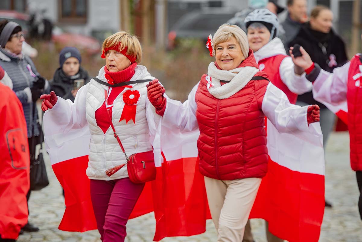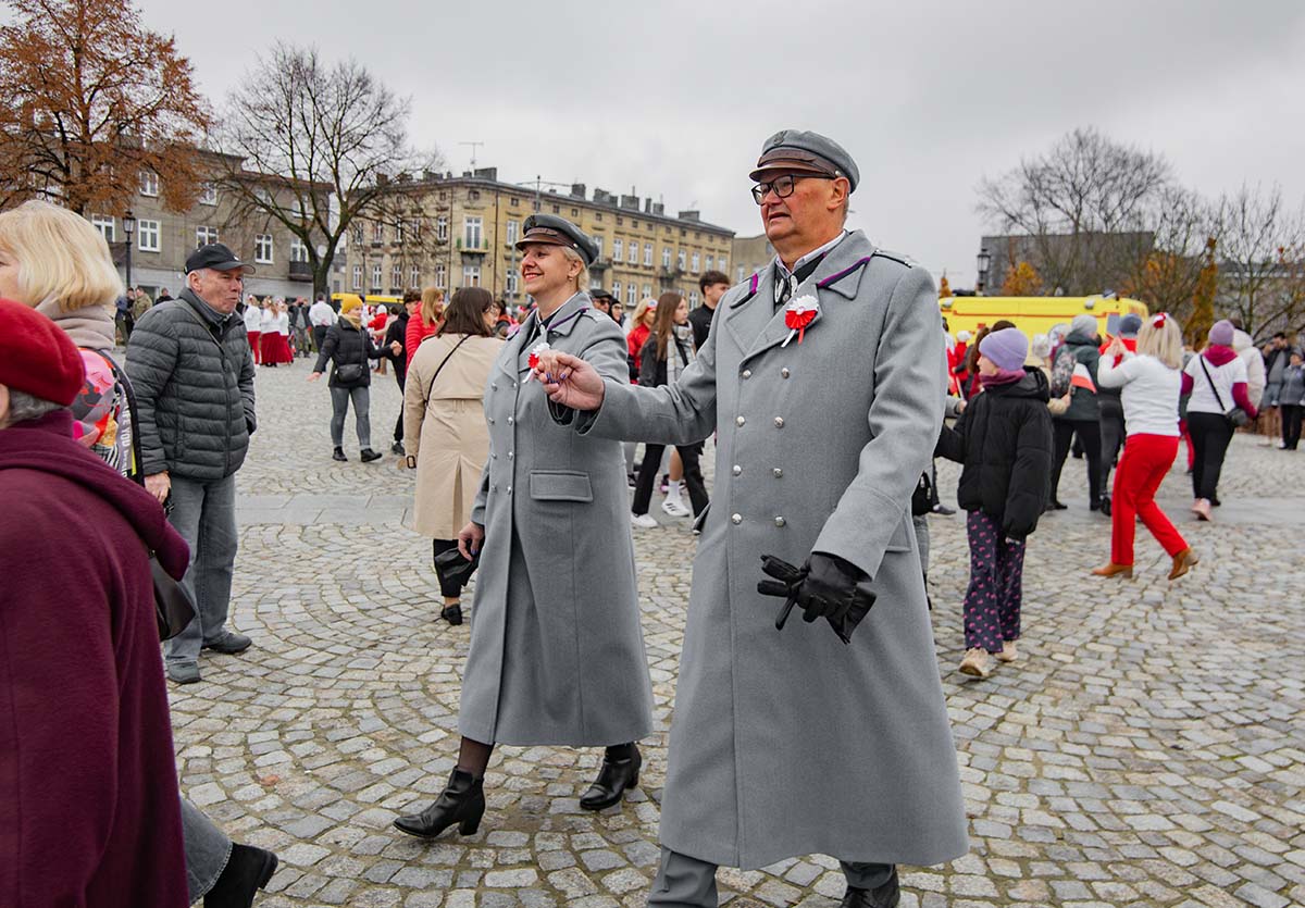 Na Rynku pojawili się również mieszkańcy, uczestnicy rajdu i biegu, a także całe rodziny z dziećmi, które wspólnie świętowały 107. rocznicę odzyskania przez Polskę niepodległości.