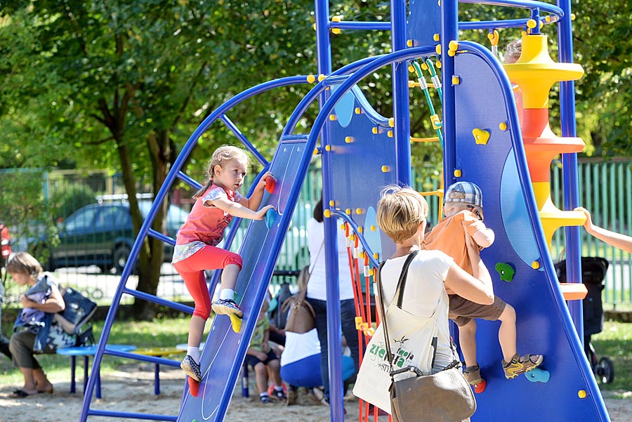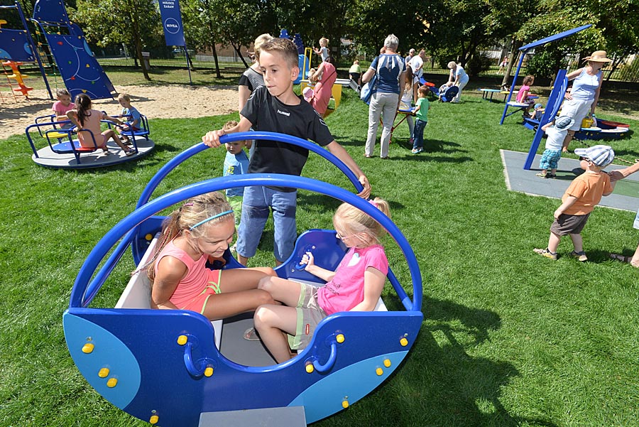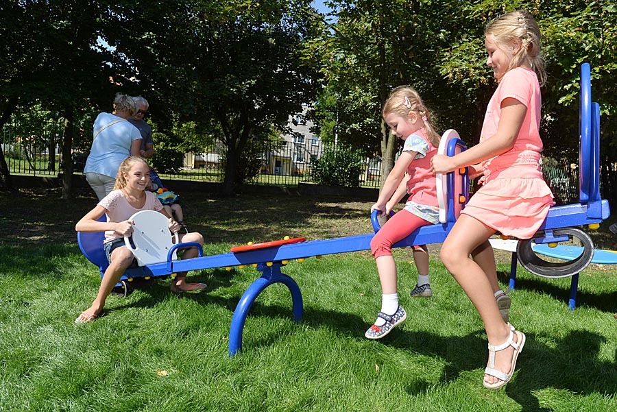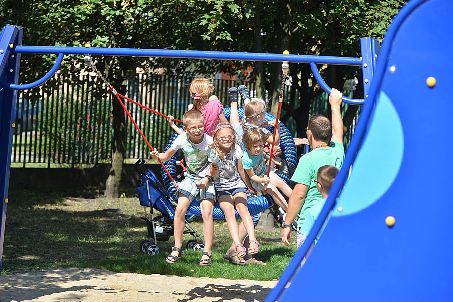 Na placu zamontowane zostały urządzenia zarówno dla młodszych, jak i starszych pociech. Jednocześnie może tu bawić się około 40 dzieci. Największym powodzeniem cieszy się wieloosobowa huśtawka, czyli tzw. bocianie gniazdo oraz drabinki ze ściankami wspinaczkowymi.
