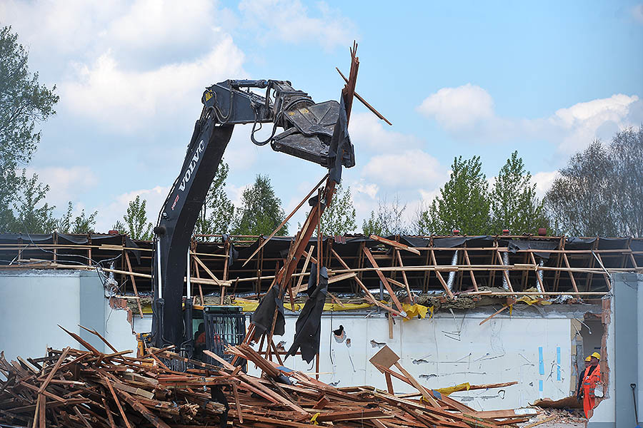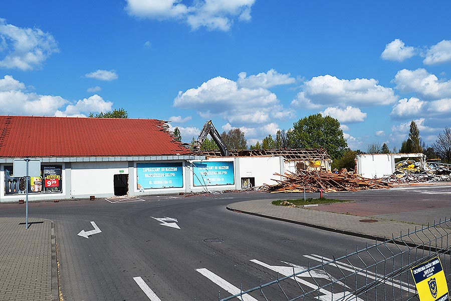 Rozbiórka rozpoczęła się we wtorek 26 kwietnia. Jak czytam na tablicy informacyjne, całość prac ma zakończyć się 24 października tego roku. Przy przebudowie sklepu pracuje 30 pracowników.