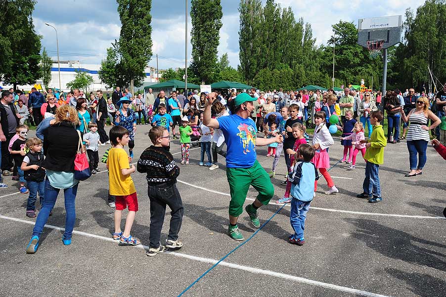 Przygotowanych zostało wiele atrakcji. Na boisku do koszykówki gry i zabawy prowadzi znany wodzirej i animator Piotr Pająk. Są dmuchane zamki, zjeżdżalnie. Konkursy dla dzieciaków przygotowali harcerze i wolontariusze z Agrafki. Jest darmowa wata cukrowa, malowanie twarzy. Tajniki rugby zdradzają zawodnicy pabianickiej drużyny Fabrykanci.