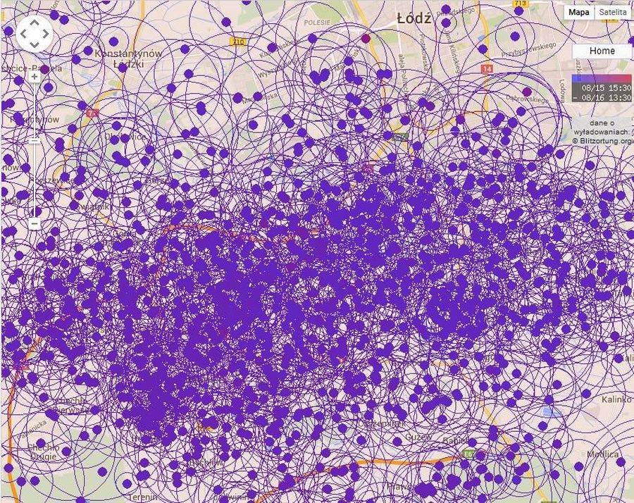 Poniżej prezentujemy mapę wyładowań nad naszym miastem.