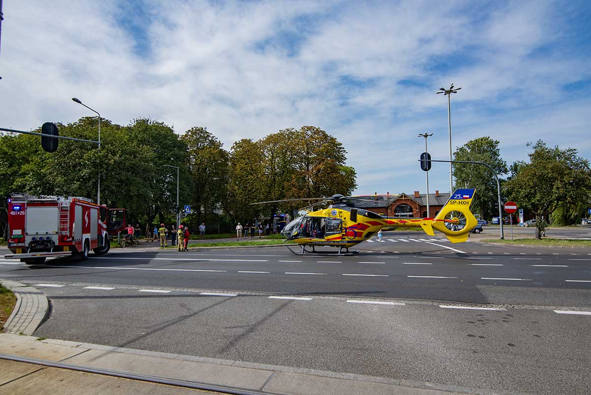 Na miejsce natychmiast wezwano wszystkie służby ratunkowe. Ze względu na stan rannego zadysponowano Lotnicze Pogotowie Ratunkowe – śmigłowiec LPR wylądował na ulicy Łaskiej, na skrzyżowaniu tuż przy dworcu kolejowym.