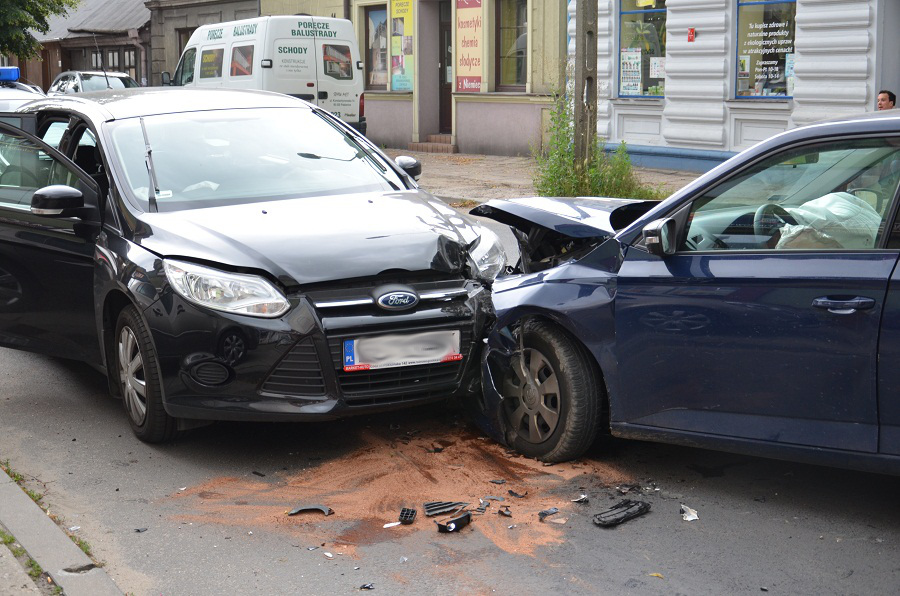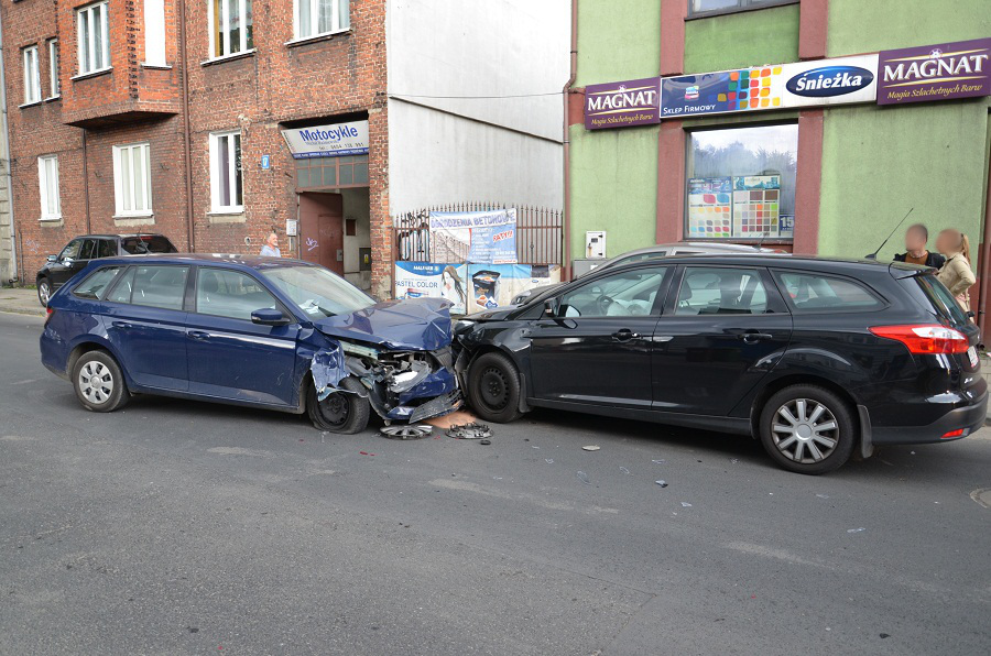 Mężczyzna jadący Oplem Omegą jechał ul. Konstantynowską w kierunku ul. Partyzanckiej. Na wysokości posesji numer 18 wykonał manewr skrętu w lewo na parking przy kamienicy. Zrobił to na tyle nieuważnie, że wymusił pierwszeństwo na jadącej z naprzeciwka Skodzie Fabii. Kobieta kierująca pojazdem próbując uniknąć kolizji, odbiła na sąsiedni pas. Niestety w przeciwną stronę jechał Ford Focus i doszło do czołowego zderzenia pojazdów.