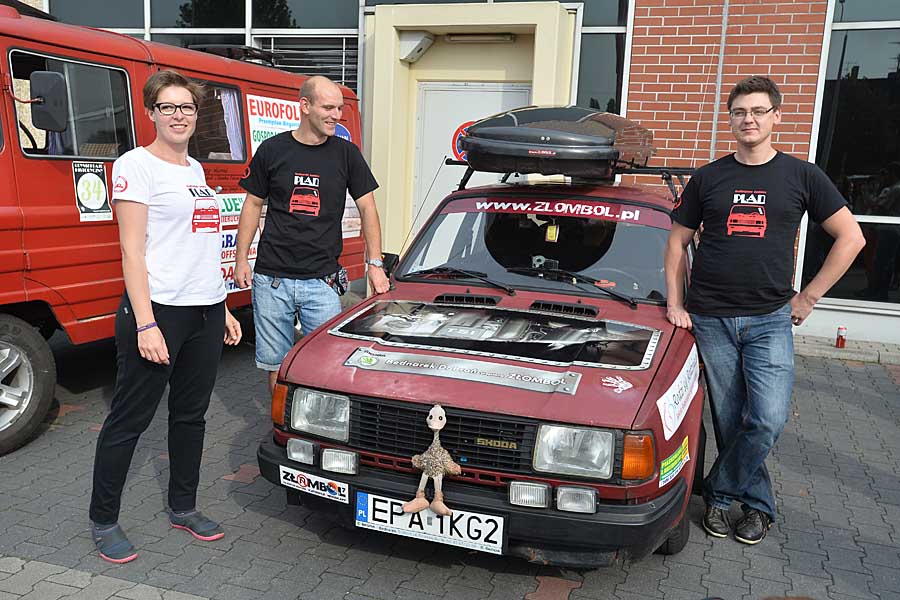 Załogi spotkały się dziś na parkingu przed Kauflandem. Żukiem z 1982 roku jadą: Sebastian, Dariusz i Zofia Staniaszek oraz Michał Malaczyński. Ekipa ze Skody to: Renata Włodarczyk, Krystian Witczak oraz Dawid Pietrasiak. W 32-letnim Polonezie jadą: Maciej Kociołek z Ksawerowa oraz Damian Ginter.