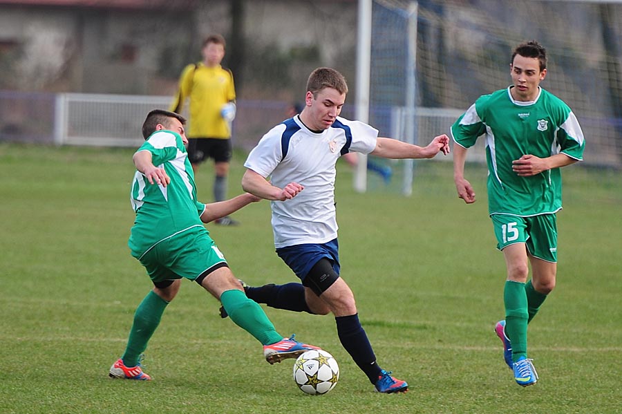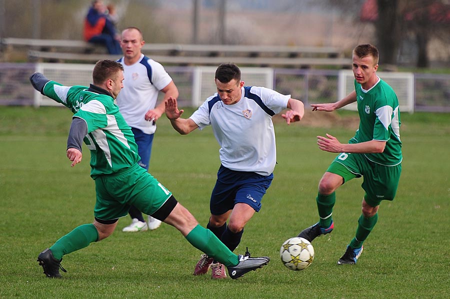 Chwilę po pierwszym gwizdku sędziego gospodarze mogli objąć prowadzenie, ale Damian Sadkowski zamiast „uderzyć jak idzie” zagraną wzdłuż bramki piłkę przez Dawida Boratyńskiego szukał koronkowego wycofania do partnera efektowną piętką i ostatecznie stracił piłkę. W odpowiedzi po błędzie Sadkowskiego przedarli się rywale, ale na posterunku był Znojek.