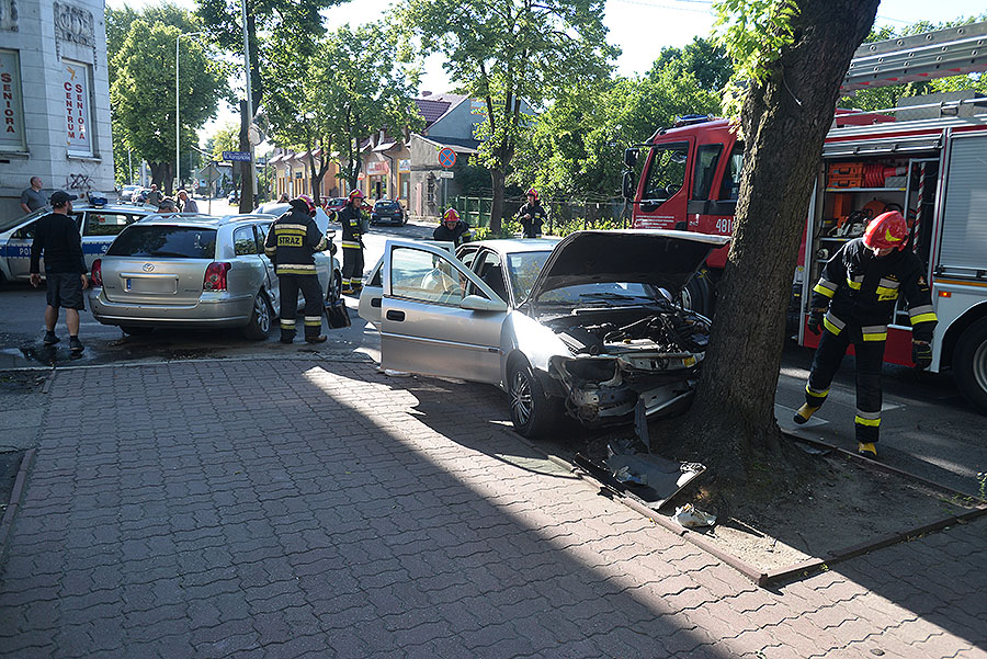 W piątek, chwilę przed godz. 17.00 Opel Vectra jechał ul. Moniuszki od strony Piasków. Nagle z ul. Konopnickiej prosto przed Opla wyjechała Toyota, która została uderzona w prawy bok. Opel odbił się i wjechał w przydrożne drzewo. Na miejscu było pogotowie ratunkowe, ale uczestnicy kolizji nie wymagali opieki medycznej. Auta kierowali mężczyźni. Sprawca został ukarany mandatem karnym.