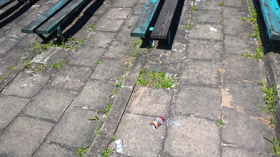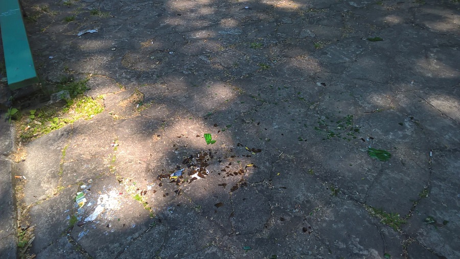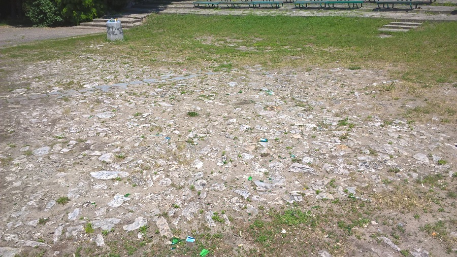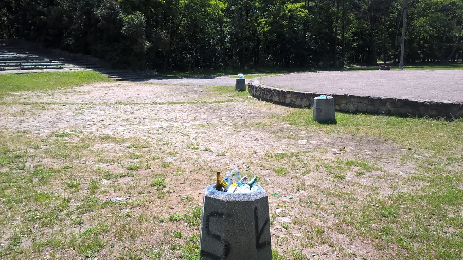 Walające się plastikowe butelki, opakowania po papierosach, porozbijane butelki po alkoholu. Tak prezentuje się amfiteatr w Parku Wolności.