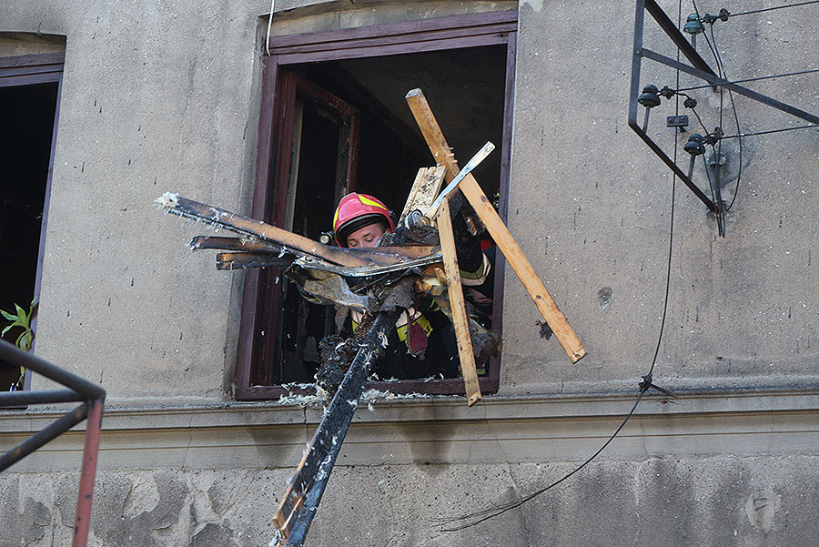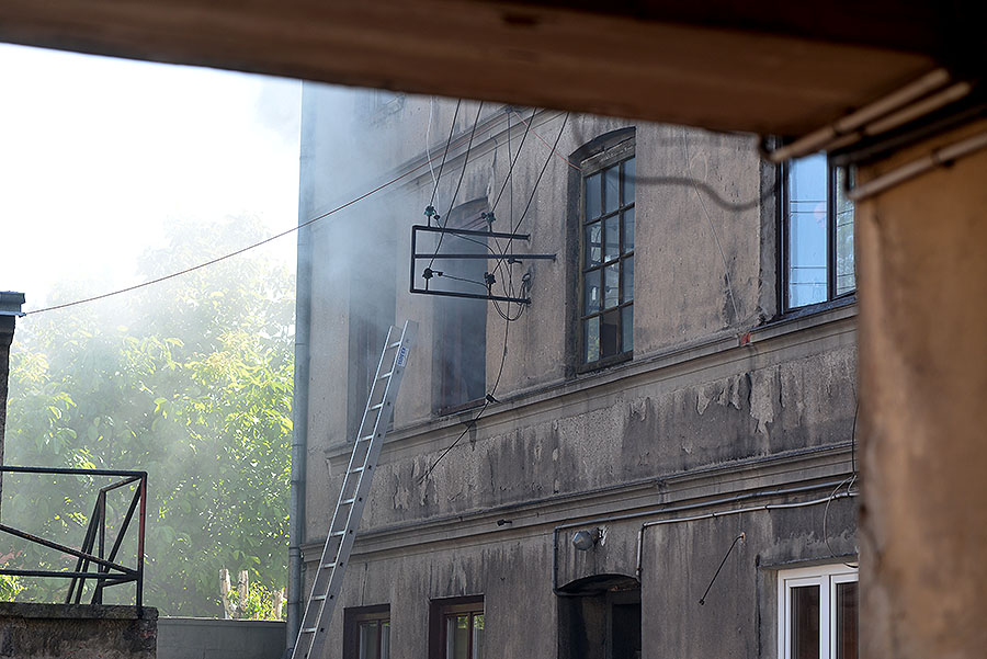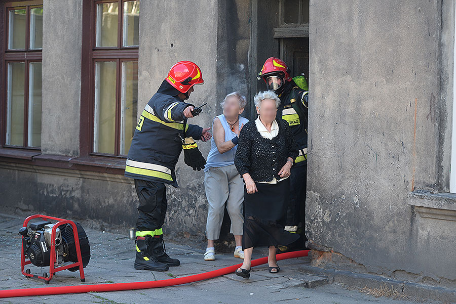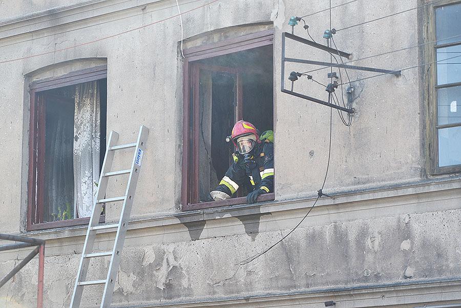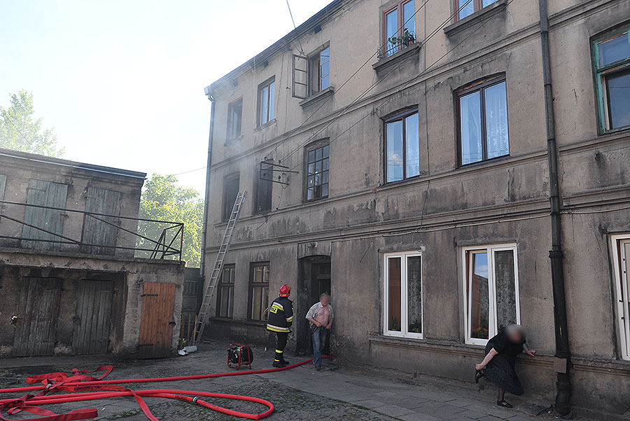 Drugi pożar wybuchł kilkanaście minut przed godz. 16.00 w kamienicy przy ul. Skłodowskiej 12. Paliło się mieszkanie na pierwszym piętrze. Sąsiedzi poczuli dym wydobywający się przez drzwi na klatkę schodową. W mieszkaniu nikogo nie było. Strażacy wybyli szybę w oknie i po drabinie weszli do środka. Szybko opanowali pożar. Wcześniej ewakuowano z kamienicy kilka osób.