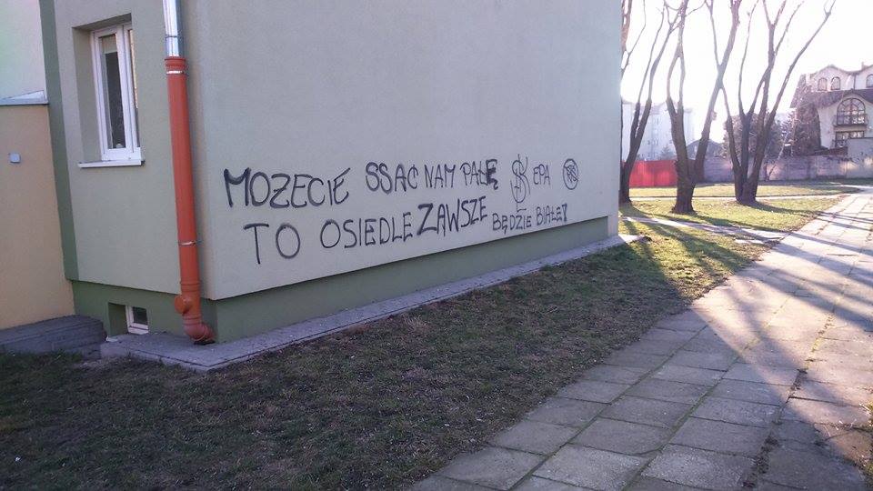 Jak poinformował nas jeden z naszych czytelników, odnowiony niedawno blok nr 291 przy ul. Dolnej został oszpecony napisem autorstwa nadgorliwych kibiców jednego z łódzkich klubów.