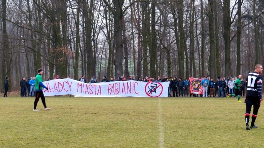 Na spotkaniu pojawiła się około 100-osobowa grupa sympatyków Widzewa z Elity Pabianic, która rozwinęła transparent z napisem „Władcy miasta Pabianic” i prowadziła doping dla łódzkiej drużyny. Nie obyło się też bez pirotechniki, odpalone zostały race.