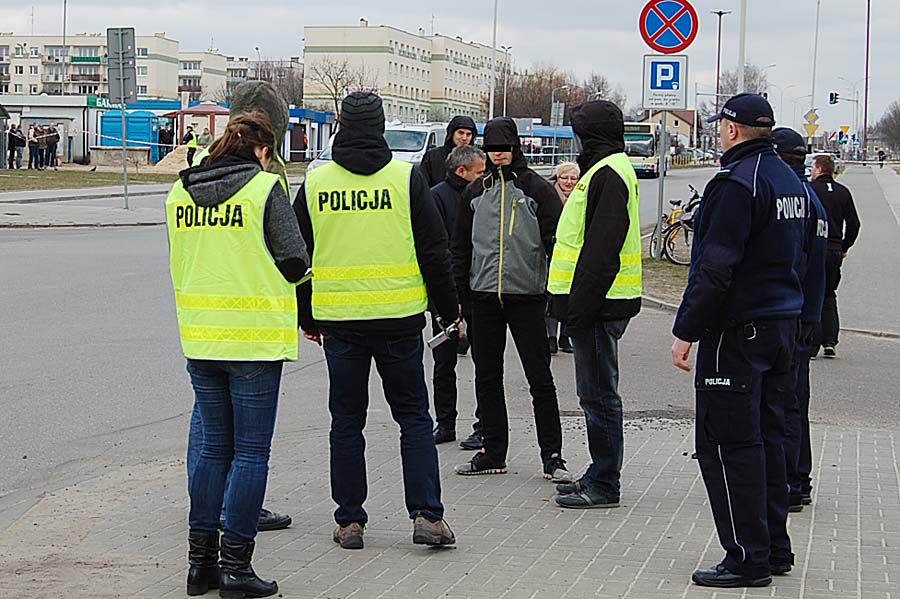 W trakcie wizji lokalnej każdy z oskarżonych po kolei w asyście policjantów i prokuratora odtwarzał właściwy przebieg zdarzenia. Jako pierwszy swoją wersję przedstawiał 28-letni Łukasz G. z Ksawerowa, który podobnie jak 19-letni Kamil K. z Górki Pabianickiej ma postawiony zarzut usiłowania pobicia ze skutkiem chuligańskim.