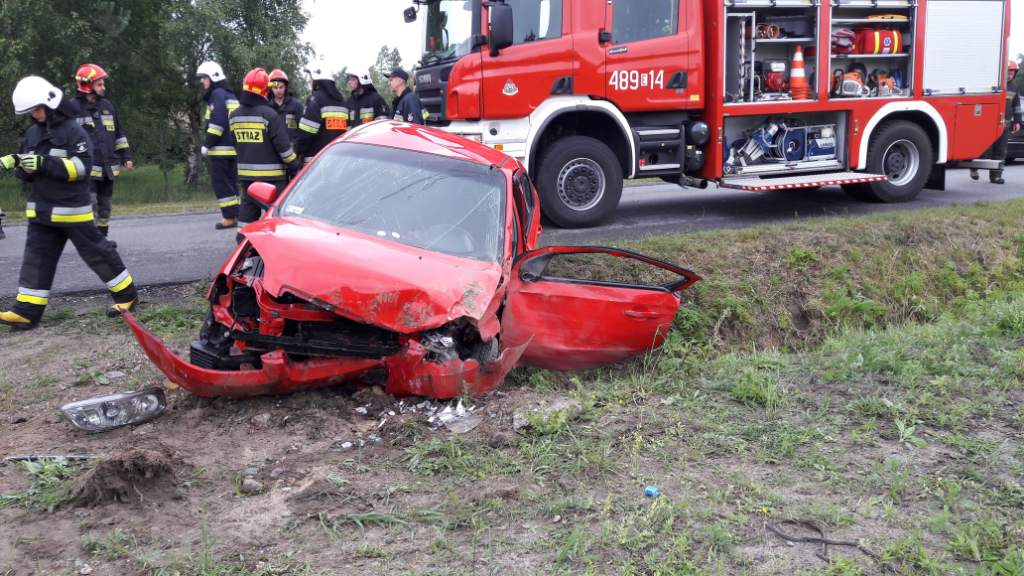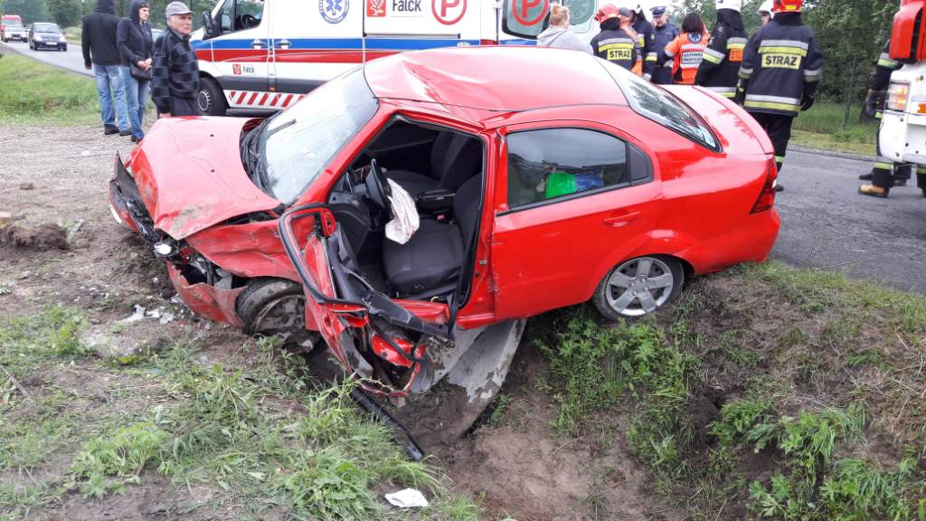 Kierujący Chevroletem wjechał do rowu i uderzył w betonowy przepust. Z auta ewakuowali go strażacy.