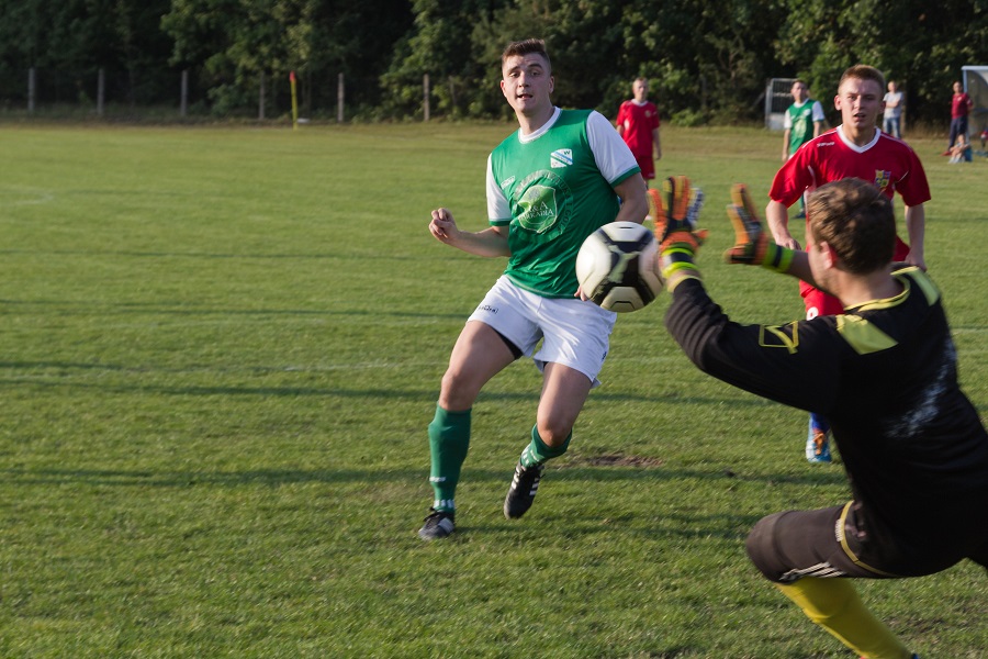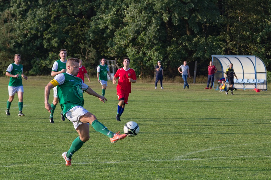Od samego początku to pabianiczanie byli stroną dominującą. Już rozegrany dwa tygodnie temu sparing pokazał, że Włókniarz ma sposób na przeciwników. W tamtym spotkaniu było 0-6 [WIĘCEJ]. Tym razem nie był to przedsezonowy sprawdzian, a pojedynek w pucharze. Na początku przed stratą gola chroniły gospodarzy poprzeczki. Jednak w 19. minucie meczu Maślakiewicz wykorzystał zamieszanie po rzucie rożnym i dobrze odnalazł się w polu karnym. Nie pozostało mu nic innego jak spróbować strzału i trafił on w górną część bramki pokonując bramkarza. Kolejna dogodna sytuacja do podwyższenia wyniku nadarzyła się już chwilę później. Na korzyść „Zielonych” podyktowany został rzut karny. Niestety, zawodnik gości nie wykorzystał swojej szansy. Do końca pierwszej połowy było jeszcze kilka dogodnych akcji, jednak wynik się nie zmienił.