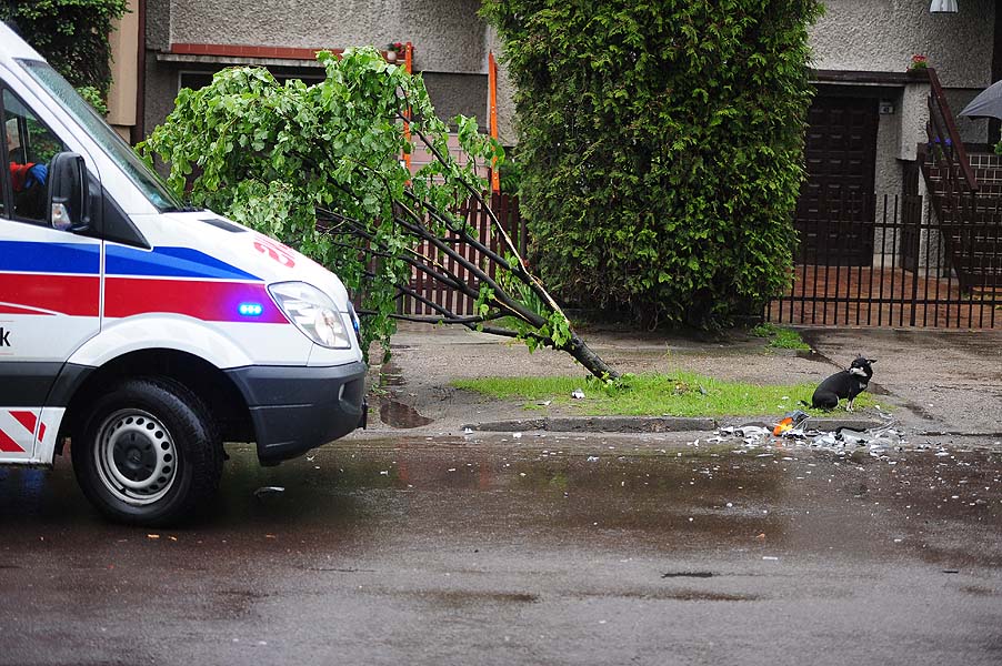 Mężczyzna zjechał na trawnik, ale zahaczył o drzewo. Uskarżał się na ból głowy, więc policja wezwała pogotowie ratunkowe. Został zabrany do szpitala.