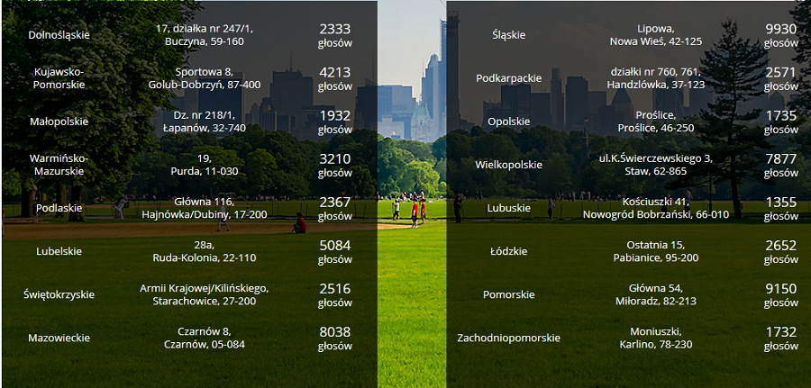 Tutaj zasady są nieco inne niż w przypadku podwórka Nivea. Każde województwo dostanie jedną siłownię, a nie 16 miejscowości z największą liczbą głosów. Pabianice mają więc szansę na siłownię, jeśli będą mieć najwięcej głosów w województwie łódzkim. Proszę głosować bo Gorzkowice nas gonią !!!!