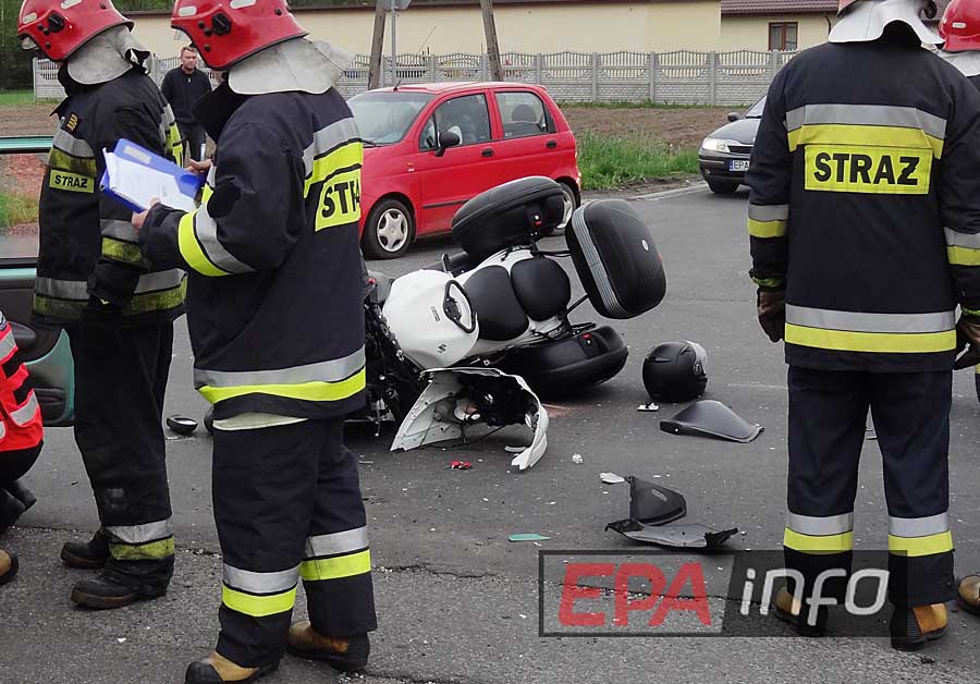 Ranny motocyklista został zabrany do szpitala. Wjechał w bok Fiata Seicento.